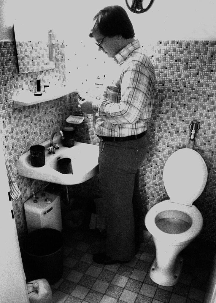 Üblicherweise wurden die Filme in vielen kleinen Bezirksredaktionen im Redaktions-WC, dem am besten abzudunkelnden Raum, im Handwaschbecken entwickelt, wo drei Jobo-Tanks nebeneinander bereitstanden. Links mit dem Entwickler, in der Mitte die Dose mit dem Stoppbad und rechts das Fixierbad. Eine handelsübliche Eieruhr wurde frei Schnauze auf fünf bis acht Minuten eingestellt – je nach verwendetem Film, Jahreszeit (Temperatur) und Erschöpfungszustand des Entwicklers – und wenn man das Klingeln nicht gerade überhörte, was zu tiefschwarzen Negativen führte, und wenn ein fremder WC-Benutzer beim Händewaschen nicht die Dosen durcheinander gebracht hatte, kamen einigermaßen brauchbare 36er Negativstreifen heraus, die mit einem Föhn oder über dem Ölofen getrocknet wurden.