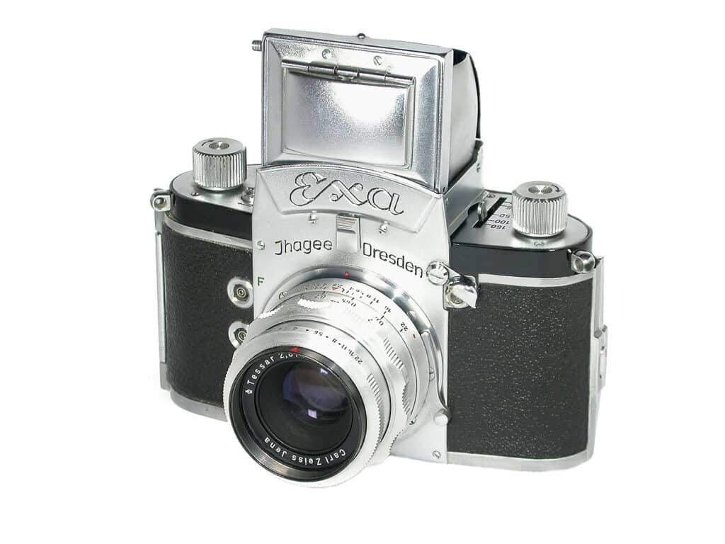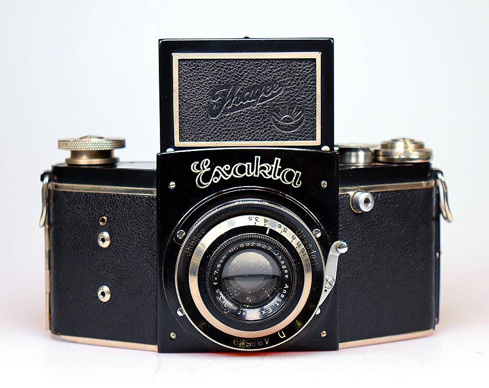 Ihagee Kamerawerk, Steenbergen & Co., Dresden; ab 1959 VEB Pentacon. Wichtig zu wissen: Die Klassifizierung der verschiedenen Exakta-Kameras erfolgt nach dem Standardwerk “Kameras aus Dresden” von Richard Hummel (1922-1998), der über Jahrzehnte hinweg in der Dresdner Kameraindustrie gearbeitet hatte.