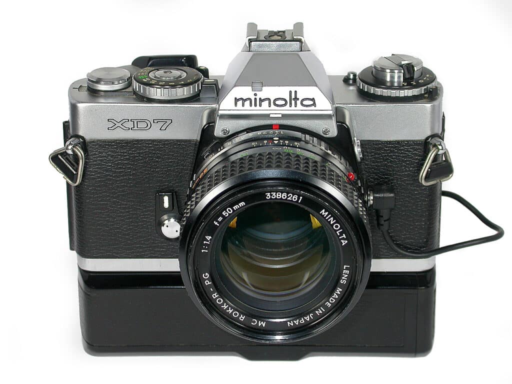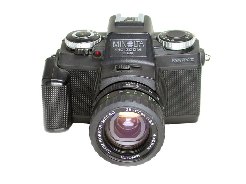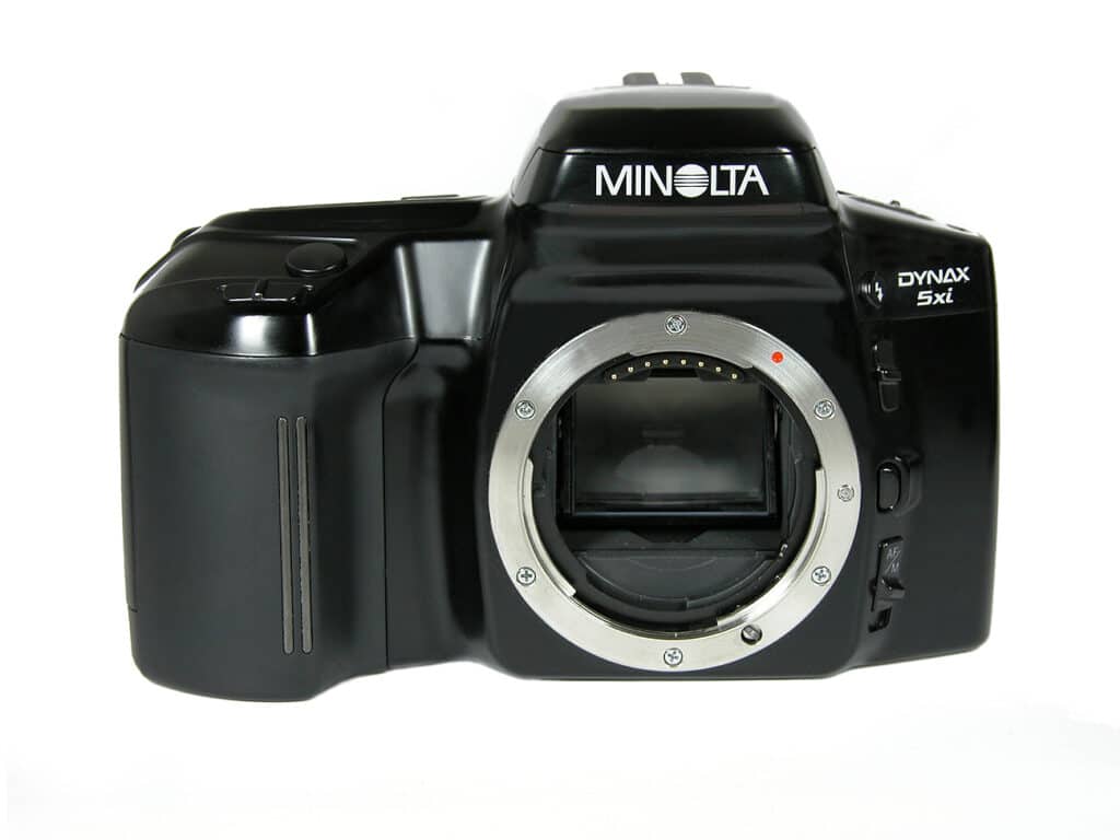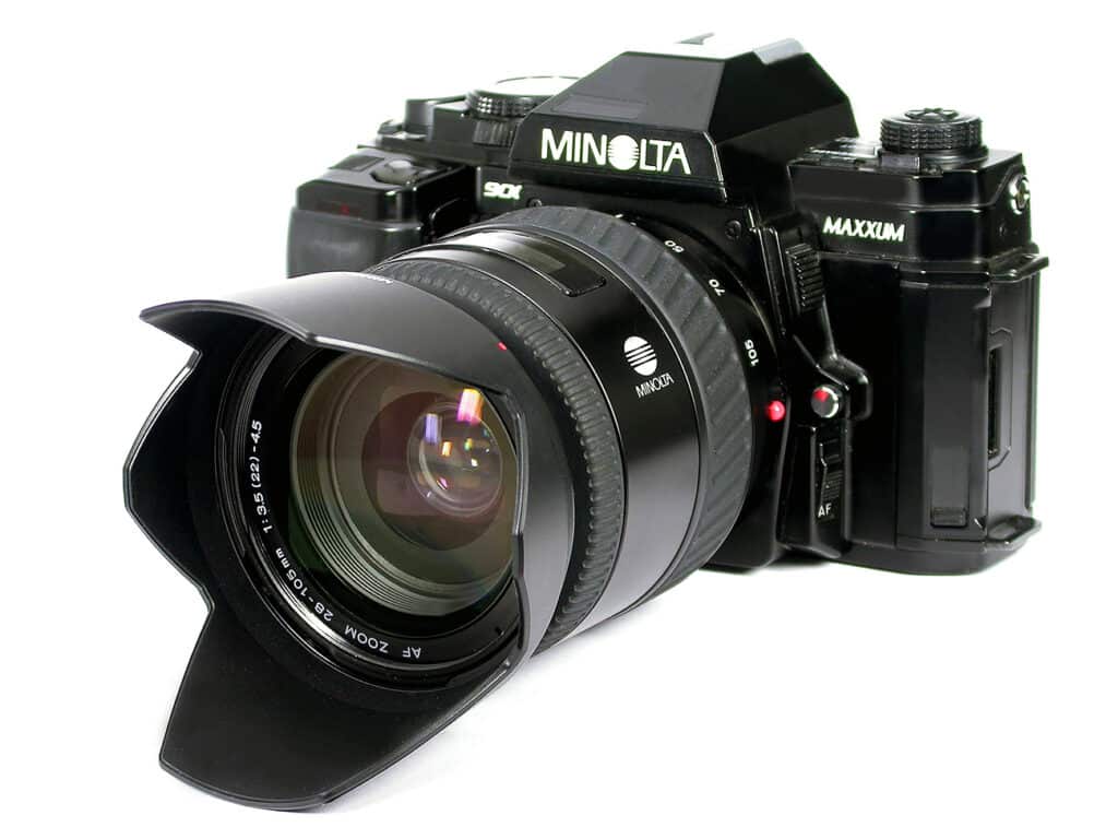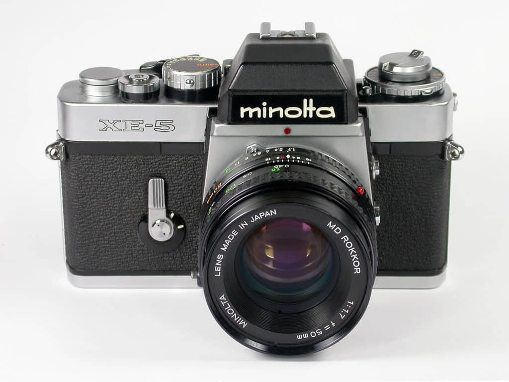Minolta, gegründet 1926, war einer der ältesten Kamerahersteller Japans und bis 2003, nach Canon und Nikon, der drittgrößte der Welt. Bei der Fusion von Minolta und Konica 2003 waren beide Unternehmen absolut gleichberechtigt. Die Fusion sollte Kosten in Höhe von jährlich etwa 400 Millionen Euro einsparen. Im 2005 kündigte Konica Minolta eine strategische Partnerschaft mit Sony an, zusammen wollten die beiden Unternehmen hochwertige Digitalkameras entwickeln. Minolta zog sich danach aus dem Kamerageschäft komplett zugunsten von Sony zurück. Ein Teil der AV-DSLR-Systeme einschließlich einiger Wechselobjektive wurde von Sony übernommen. Der als A-Mount bezeichnete Objektivanschluss von Sony entspricht weitgehend dem Minolta AF-Bajonett von 1985.
