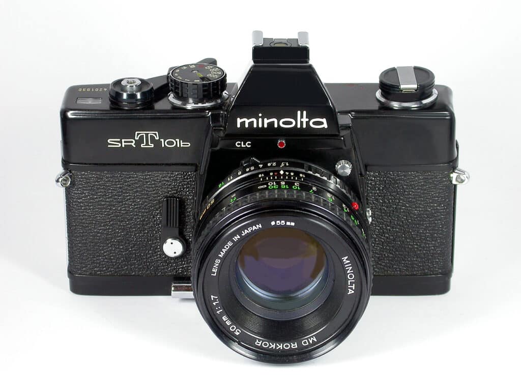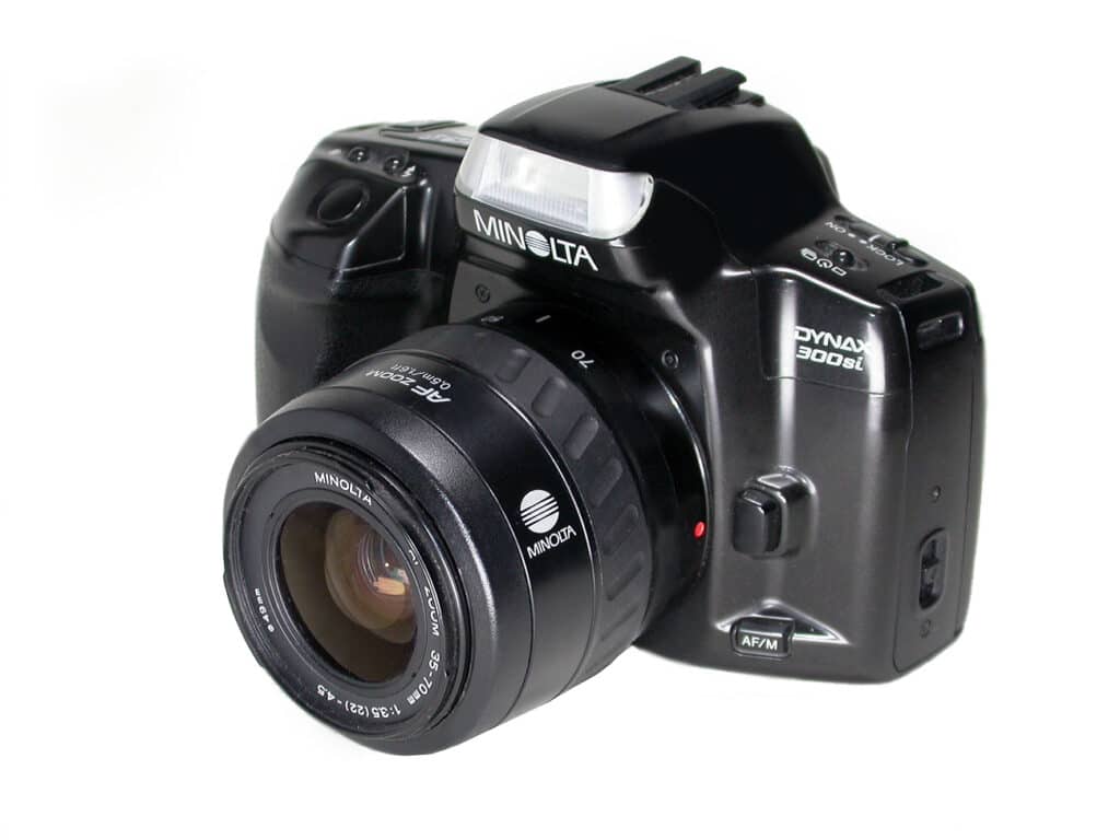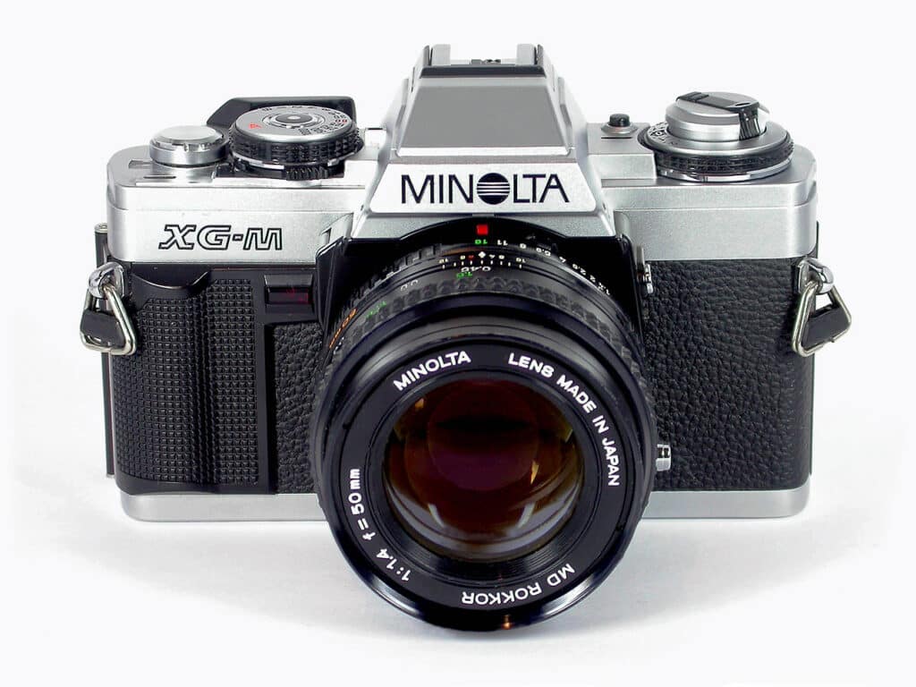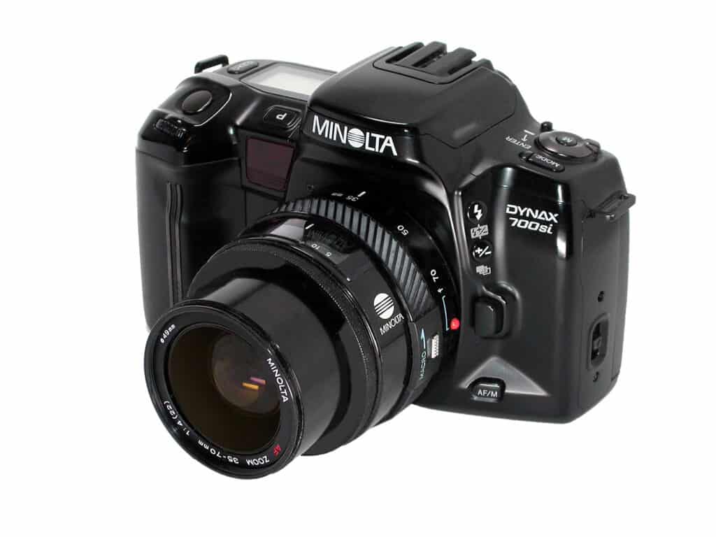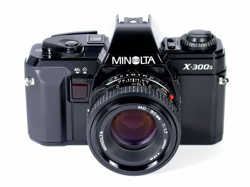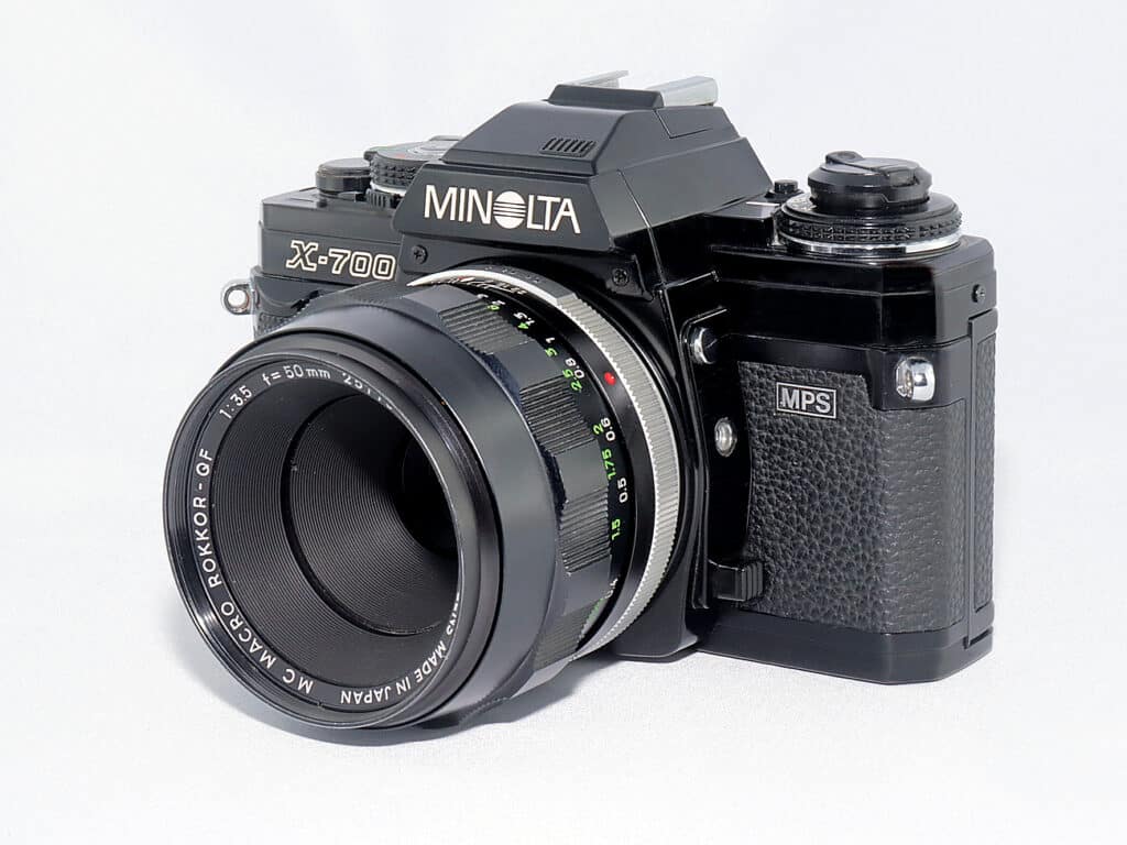 Minolta, gegründet 1926, war einer der ältesten Kamerahersteller Japans und bis 2003, nach Canon und Nikon, der drittgrößte der Welt. Bei der Fusion von Minolta und Konica 2003 waren beide Unternehmen absolut gleichberechtigt. Die Fusion sollte Kosten in Höhe von jährlich etwa 400 Millionen Euro einsparen. Im 2005 kündigte Konica Minolta eine strategische Partnerschaft mit Sony an, zusammen wollten die beiden Unternehmen hochwertige Digitalkameras entwickeln. Minolta zog sich danach aus dem Kamerageschäft komplett zugunsten von Sony zurück. Ein Teil der AV-DSLR-Systeme einschließlich einiger Wechselobjektive wurde von Sony übernommen. Der als A-Mount bezeichnete Objektivanschluss von Sony entspricht weitgehend dem Minolta AF-Bajonett von 1985.