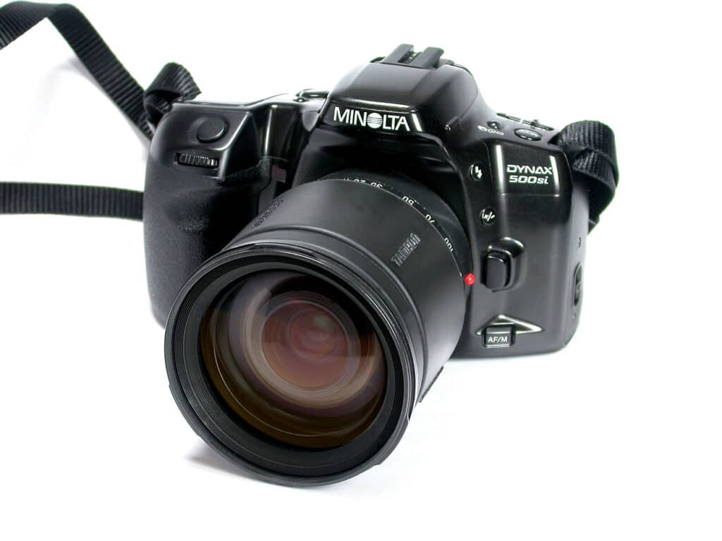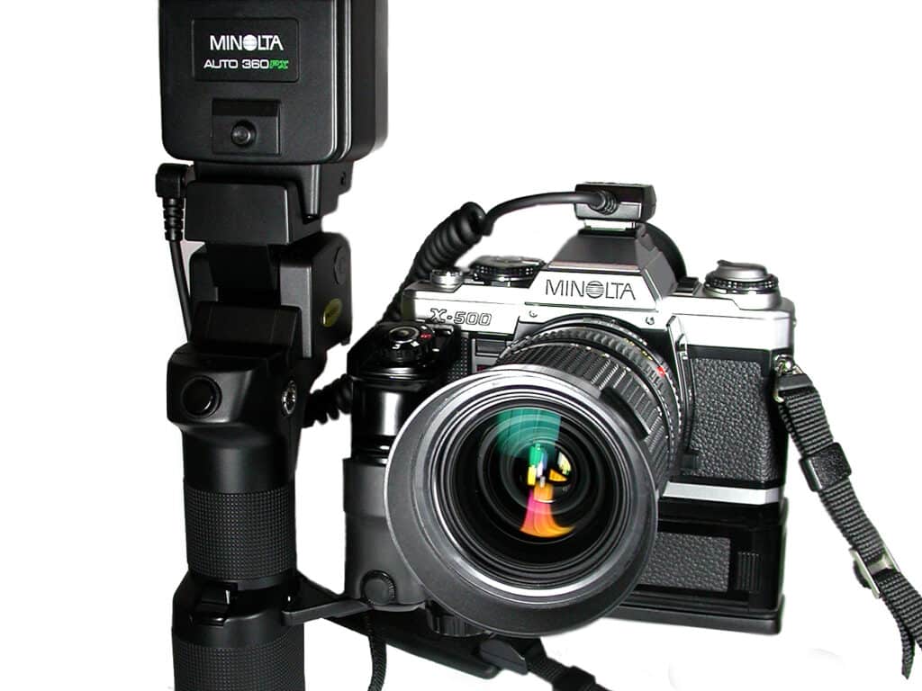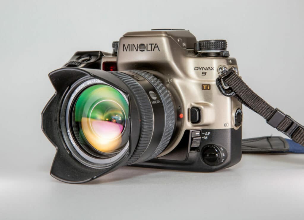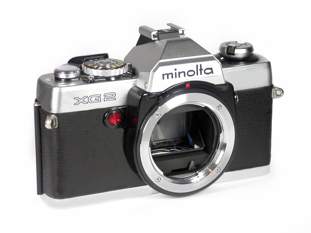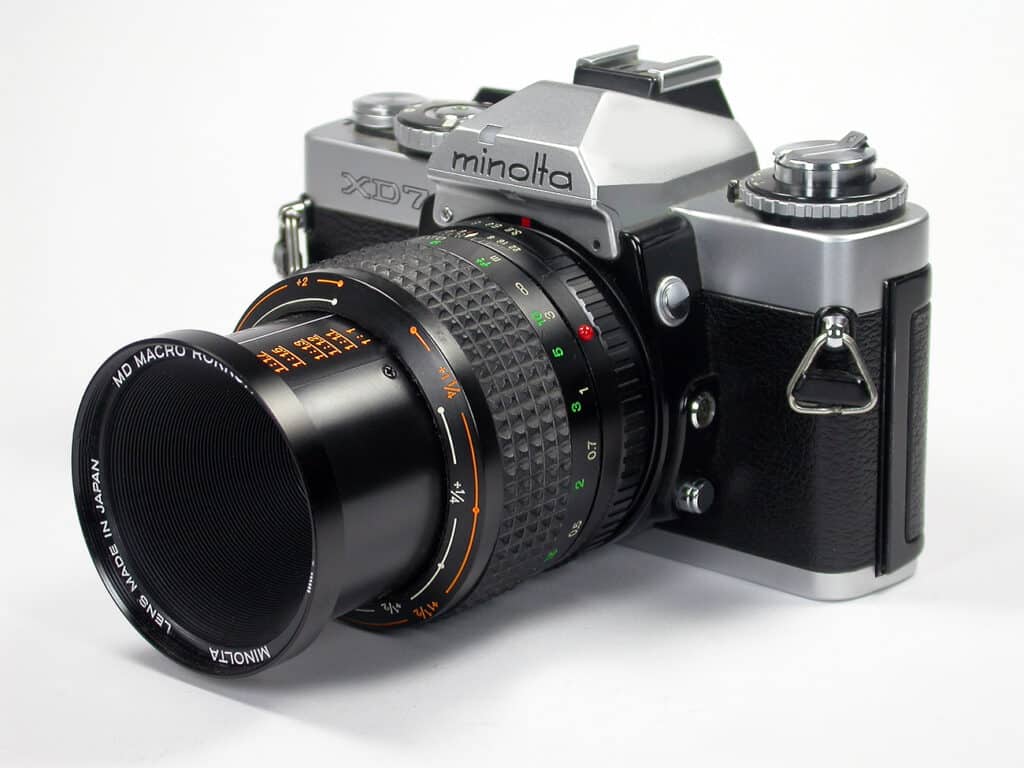 Minolta, gegründet 1926, war einer der ältesten Kamerahersteller Japans und bis 2003, nach Canon und Nikon, der drittgrößte der Welt. Bei der Fusion von Minolta und Konica 2003 waren beide Unternehmen absolut gleichberechtigt. Die Fusion sollte Kosten in Höhe von jährlich etwa 400 Millionen Euro einsparen. Im 2005 kündigte Konica Minolta eine strategische Partnerschaft mit Sony an, zusammen wollten die beiden Unternehmen hochwertige Digitalkameras entwickeln. Minolta zog sich danach aus dem Kamerageschäft komplett zugunsten von Sony zurück. Ein Teil der AV-DSLR-Systeme einschließlich einiger Wechselobjektive wurde von Sony übernommen. Der als A-Mount bezeichnete Objektivanschluss von Sony entspricht weitgehend dem Minolta AF-Bajonett von 1985.