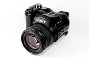 Interessante digitale Bridge-Kamera (2003-2006) von Sony. Damaliger Preis: stolze 680 Euro. CCD-Sensor 2/3 Zoll (Cropfaktor 3,9), Autofokus. Fotoauflösungen (4:3) zwischen 640 x 480 und 3.264