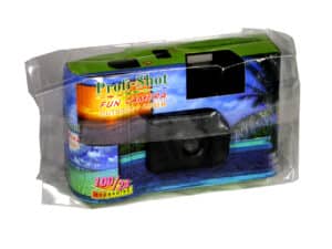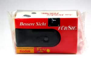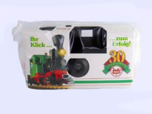 Eine Variation der 110er-Film-Minis, gerade mal 9 cm lang. Diese „Kamera“ aus China gab’s teilweise als Werbegeschenk. Anfang 1990er Jahre. Technische Daten: Objektiv ohne Bezeichnung;