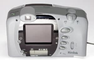 Ein ganz schöner Klopper (rund 800 Gramm) und wenig bekannt: Einäugige Spiegelreflexkamera aus dem Jahr 2000 für den Kleinbildfilm 135 (Aufnahmeformat 24 x 36 mm),