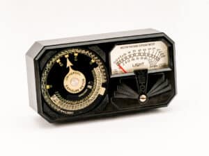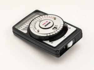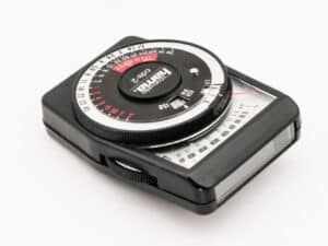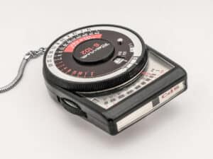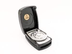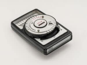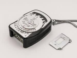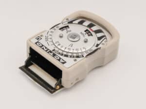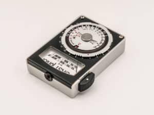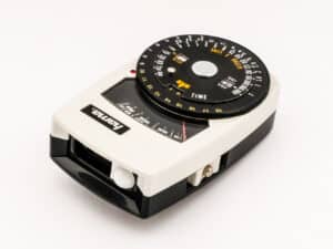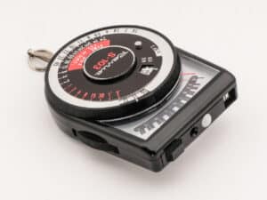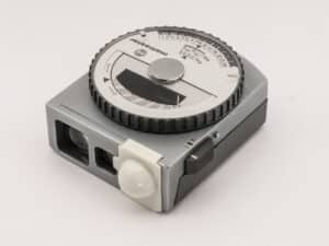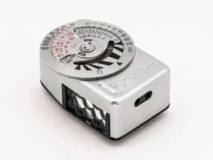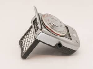 Belichtungsmesser mit Selen-Messzelle, produziert in Japan, vielleicht von Sekonic, Anfang 1960er Jahre. Mit einer vor den Lichteintritt schwenkbaren Mattscheibe ist er auch für Lichtmessung geeignet.