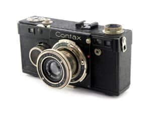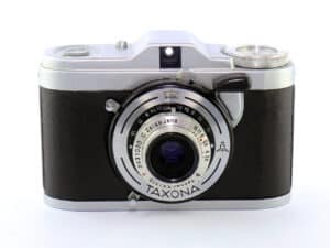 Einäugige Spiegelreflexkamera (1956-1958) für den Kleinbildfilm 135 (Aufnahmeformat 24 x 36 mm). Manuelle Schärfeeinstellung, Prismensucher, mechanischer Zentralverschluss Synchro Compur (T, B, 1 bis 1/500 Sekunde),