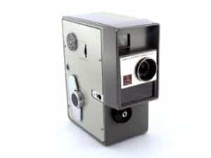 Amerikanische Boxkamera (1964) für Rollfilm 120/620/B2 (Aufnahmeformat 6 x 6 cm). Fixfokus, Bakelitgehäuse,  Einfachverschluss, manuelle Belichtungssteuerung, gewölbte Filmbühne; Spezialblitz aufsteckbar. Gehäuse in braun und dunkelbraun,