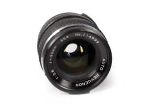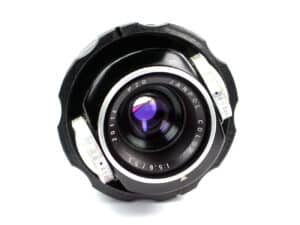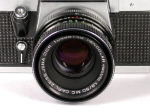 Einäugige Spiegelreflexkamera (SLR) für den Kleinbildfilm 135 (Aufnahmeformat 24 x 36 mm), hergestellt in Japan ab 1966. Für Wechselobjektive mit M-42-Gewindeanschluss, hier mit dem Weitwinkelobjektiv