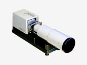 Spezielle 35-mm-Spiegelreflexkamera (1985) mit Schlitzverschluss und fest eingebautem Ringblitzobjektiv für Zahnarztpraxen. Filmformat: 24 x 36 mm – alle handelsüblichen Kleinbildfilme 135. Objektiv: Yashica ML Makro