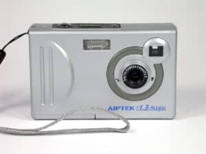 Äußerst kompakte Sucherkamera für den Kleinbildfilm 135 (Aufnahmeformat 24 x 36 mm), hergestellt ab 1994 in Taiwan. Objektiv: Ricoh Lens 1:3,5/30 mm Macro und 1:8,0/24
