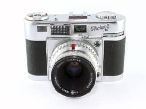 Kleinbild-Sucherkamera (Aufnahmeformat 24 x 36 mm) aus den 1960er Jahren. Objektiv: Color-Isconar 1:2,8/45 mm von ISCO-Göttingen, Entfernungseinstellung nach Piktogrammen, mit Prontor-Lux-Verschluss und eingebautem, gekuppeltem Belichtungsmesser