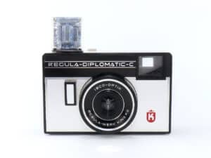 Sucherkamera für den Rollfilm 120 und zwei Aufnahmeformate (6 x 6 oder 4 x 4 cm) von Franka, Bayreuth, hergestellt ab 1960. „Spezial-Objektiv“ 1:8/70 mm