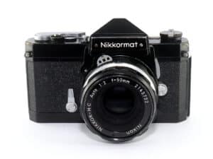 Kleinbild-Spiegelreflexkamera mit Messung durch das Objektiv bei offener Blende für den Kleinbildfilm 135 (Negativformat: 24 x 36 mm). Vertikal laufender Metall-Schlitzverschluss mit Zeiten von 1/1.000