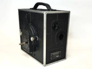 Einfache Metall-Boxkamera für den Rollfilm 120 (Aufnahmeformat 6 x 9 cm), 1938. Objektiv ohne Bezeichnung; Fixfokus. Zwei Brillantsucher. Einfachverschluss (B, Moment), Drahtauslöseranschluss, zwei Stativgewinde (3/8