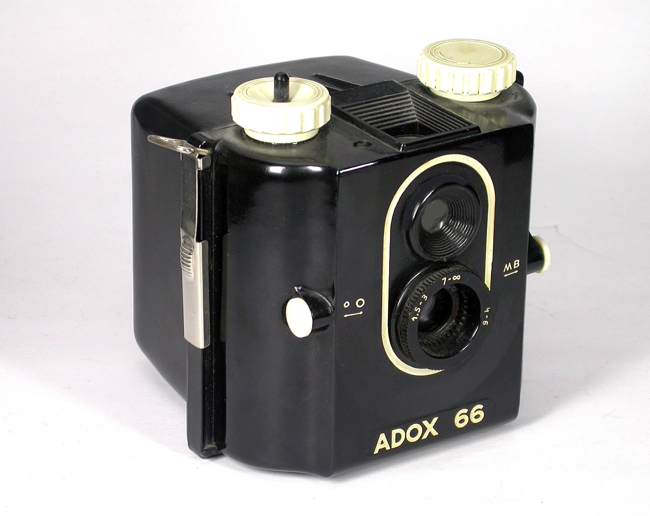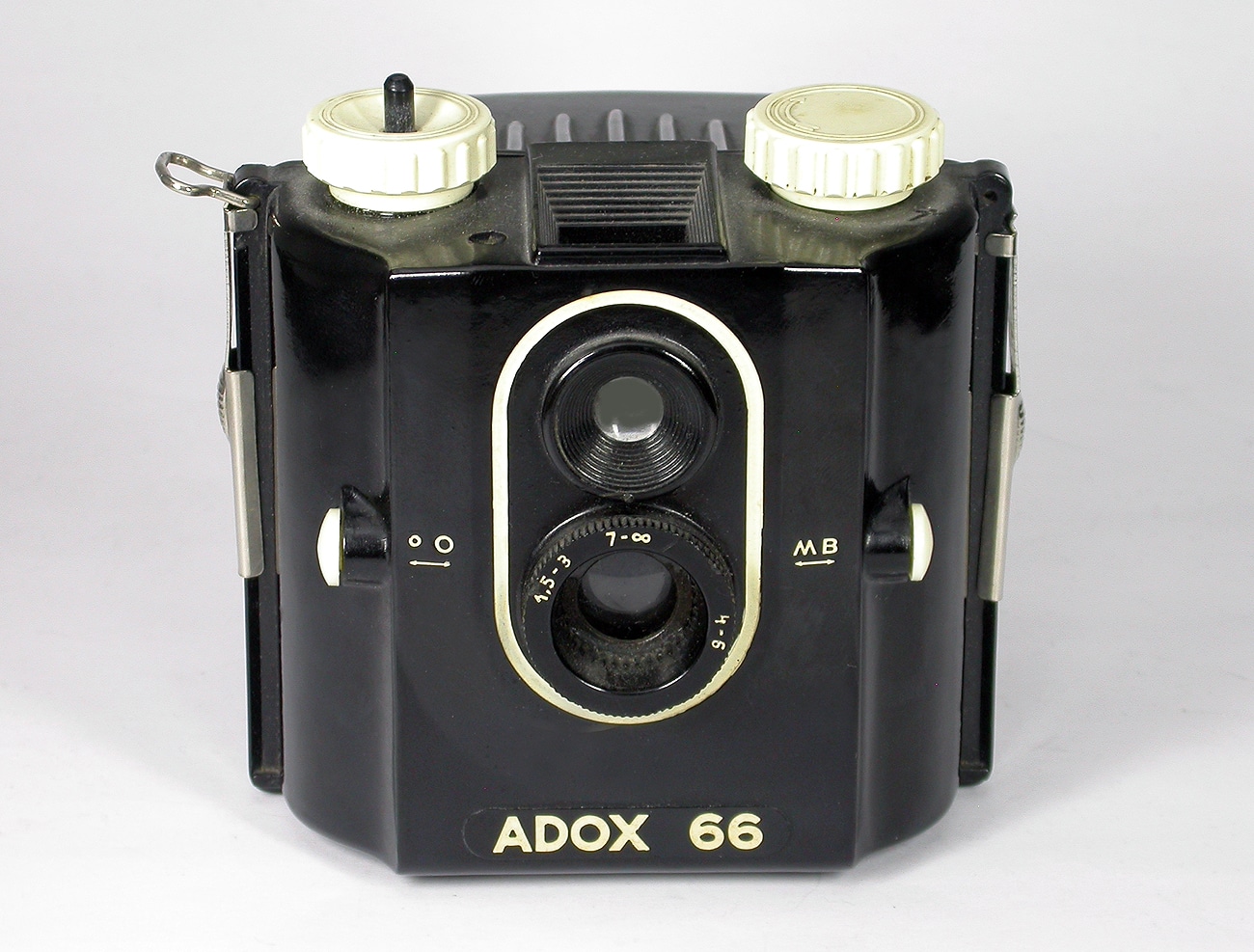 Die ADOX 66 (1950-1958) für den Rollfilm 120 (Negativformat 6 x 6 cm, 12 Aufnahmen auf B-II-8-Film). Objektiv 1:8 mit Abblendungsmöglichkeit auf 1:11, drei Frontlinseneinstellungen: 1,5 bis 3 Meter, 4 bis 6 Meter und 7 Meter bis unendlich. Aufsichtssucher. Das Gehäuse besteht aus Bakelit. Die ADOX 66 wurde auch in einer Geschenkpackung mit zwei Rollfilmen ADOX Rapid 21 geliefert. Gewicht des Apparates: 250 Gramm, Preis der Geschenkpackung: 17,25 DM (Katalog, 50er Jahre). Die Kamera wurde von der Herrmann Wolf GmbH in Wuppertal hergestellt und vom ADOX Kamerawerk, Dr. Schleussner, Wiesbaden, vertrieben.