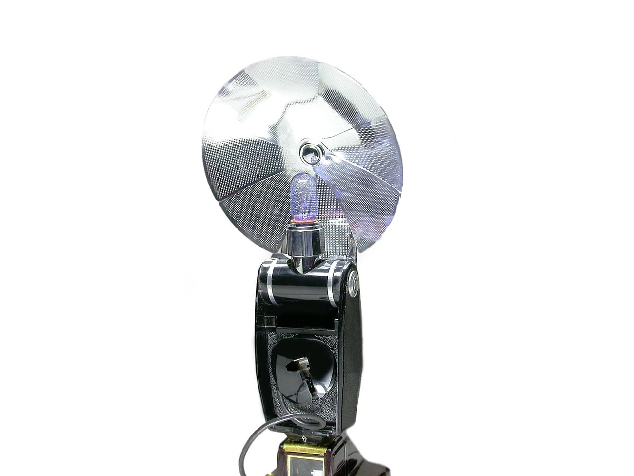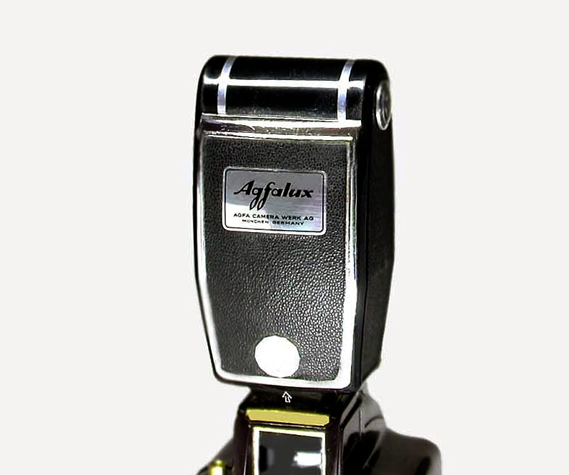 Blitzgerät für Blitzbirnchen, hergestellt in den 1950er Jahren von Agfa Camera Werk AG München. Fächerförmig aufklappbarer Reflektor; Synchronisation durch Kabelkontakt. Blendensteuerung an der Kamera gemäß Tabelle auf der Rückseite des Blitzgerätes. Angeboten im Foto-Quelle-Katalog Nr. 622 (1962). Stromversorgung: 1 x 22,5-Volt-Anodenbatterie (zum Beispiel: VARTA Pertrix Nr. 72, IEC: 15 F 20).