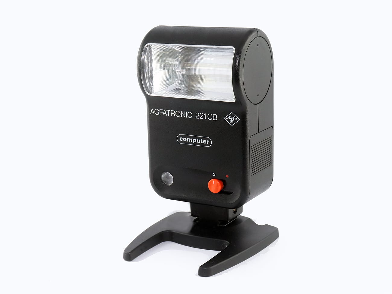 Computerblitzgerät mit Leitzahl 22 bei 21 DIN von Agfa, 1980er Jahre. Abgerundeter, feststehender Reflektor, Kunststoffgehäuse. Computerblende: 5,6 bei 21 DIN, Computerbereich: 0,8 bis 4 Meter, Blitzfolge: etwa 10 Sekunden, Blitzzahl: rund 180. Ausleuchtung: Kleinbildobjektiv 35 mm. Farbtempertur: 5.600 Grad Kelvin. Mittenkontakt und Kabelanschluss. Stromversorgung: 2 x 1,5-Volt-Batterie (AA).