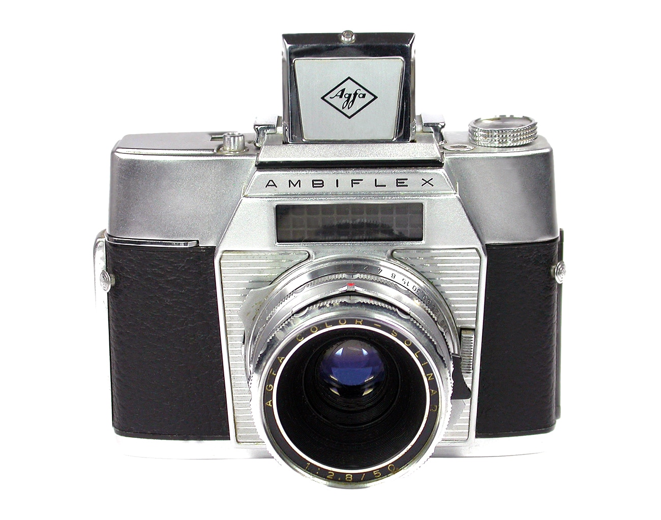 Einäugige Spiegelreflexkamera für den Kleinbildfilm 135 (Negativformat 24 x 36 mm), Bauzeit 1959 bis 1963. Hier mit dem Objektiv Agfa Color-Solinar 1:2,8/50 mm und Lichtschachtsucher. Gekuppelter Belichtungsmesser, nicht im Sucher eingespiegelt. Verschluss: Prontor-Reflex (Alfred Gauthier, Calmbach), schnellste Verschlusszeit 1/300 Sekunde. Wahlweise gab es auch das lichtstärkere Agfa Solagon 1:2,0/55 mm, zwei Tele- (Color-Telinear 135 mm und 180 mm) und ein Weitwinkelobjektiv (Ambion); Anschluss: Agfa Ambiflex-Bajonett. Aufsteckfilter 48 mm. Die Ambiflex gab es neu mit Lichtschachtsucher für 499,- DM und mit Prismensucher für 599,- DM.