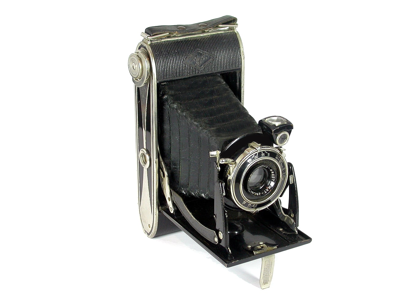 Klapp-/Spreizenkamera für den Rollfilm 120 (Negativformat 6 x 9 cm), hergestellt in den 1930er-Jahren. Objektiv: Agfa Anastigmat Igestar 1:8,8/10 cm; Entfernungseinstellung in zwei Stufen rastend. Schwenkbarer Brillant-/Spiegelsucher. Verschluss mit den Einstellungen B, 1/25, 1/50 und 1/100 Sekunde; mit einem Hebel kann der Auslöser für Langzeitbelichtungen arretiert werden. Gehäuse mit verchromten Kanten und Art-Déco-Elementen.