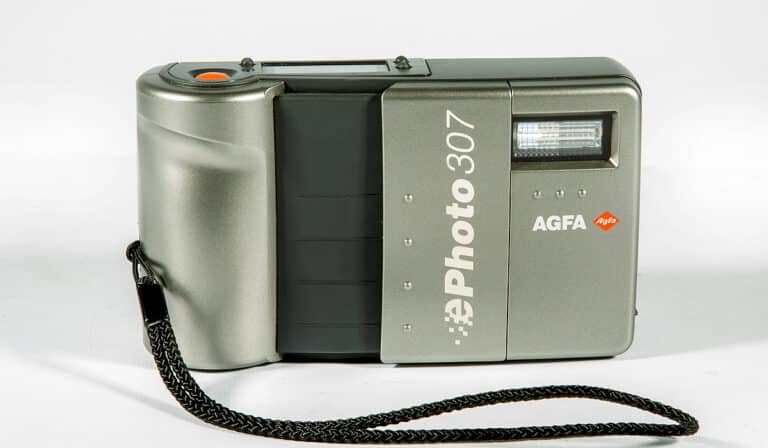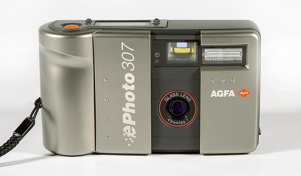 Digitalkamera für Aufnahmen im Format 640 x 480 Pixel, Typ ADC-307, aus dem Jahr 1996, hergestellt von Sanyo, Japan. Objektiv: 1:2,8/6 mm.