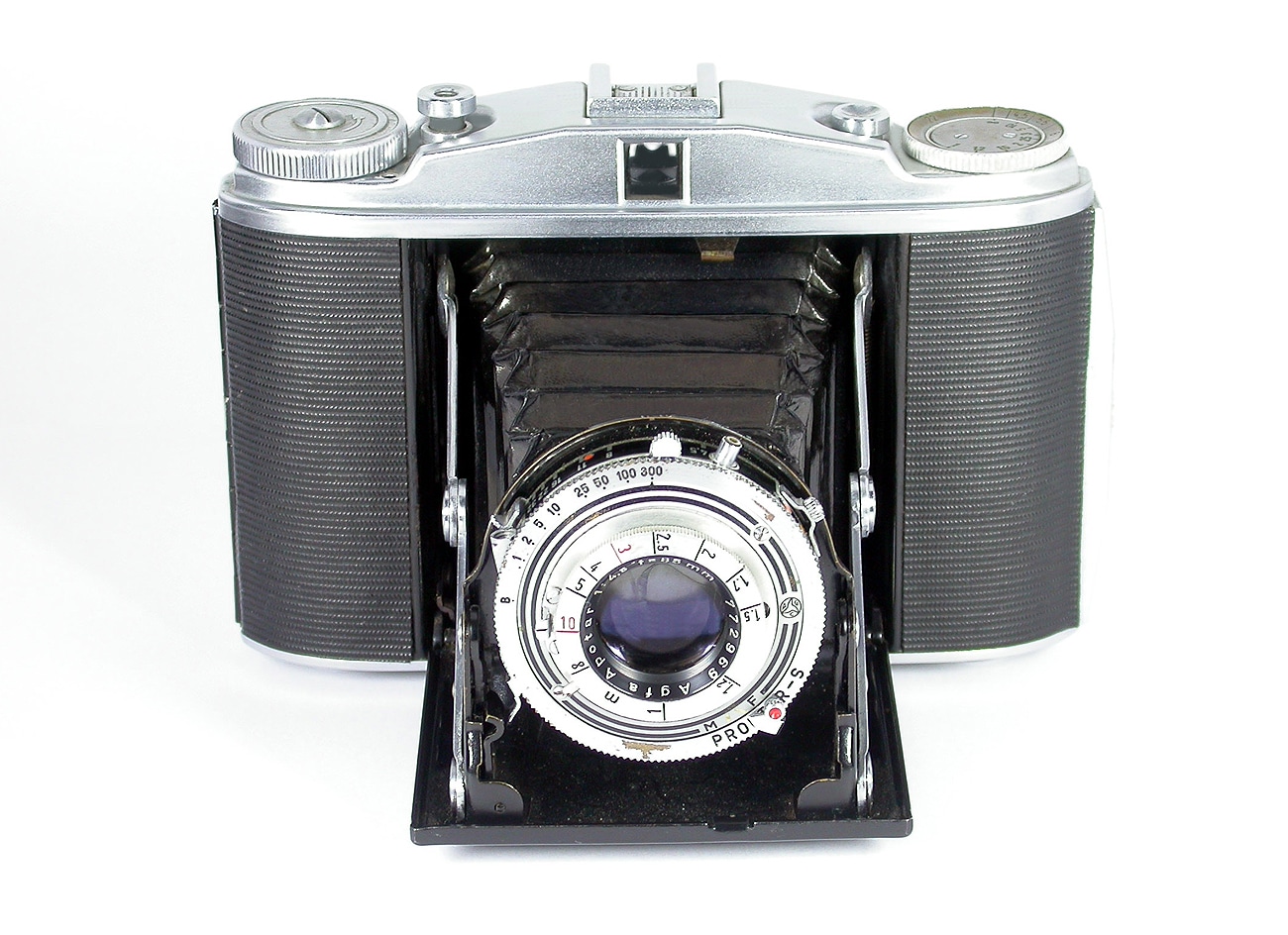 Vom Typ Isolette/Jsolette gibt es über 120 bekannte Variationen: Hier eine Isolette II, gebaut Anfang der 1950er-Jahre. Klapp-/Spreizenkamera für den Rollfilm 120 (Negativformat 6 x 6 cm). Objektiv: Agfa Apotar 1:4,5/85 mm; Newton-/Fernrohrsucher. Verschluss: Prontor-S (Alfred Gauthier, Calmbach) mit Zeiten bis 1/300 Sekunde. Doppelbelichtungssperre, Gehäuseauslöser mit Drahtauslöseranschluss; Tiefenschärfenrechner.