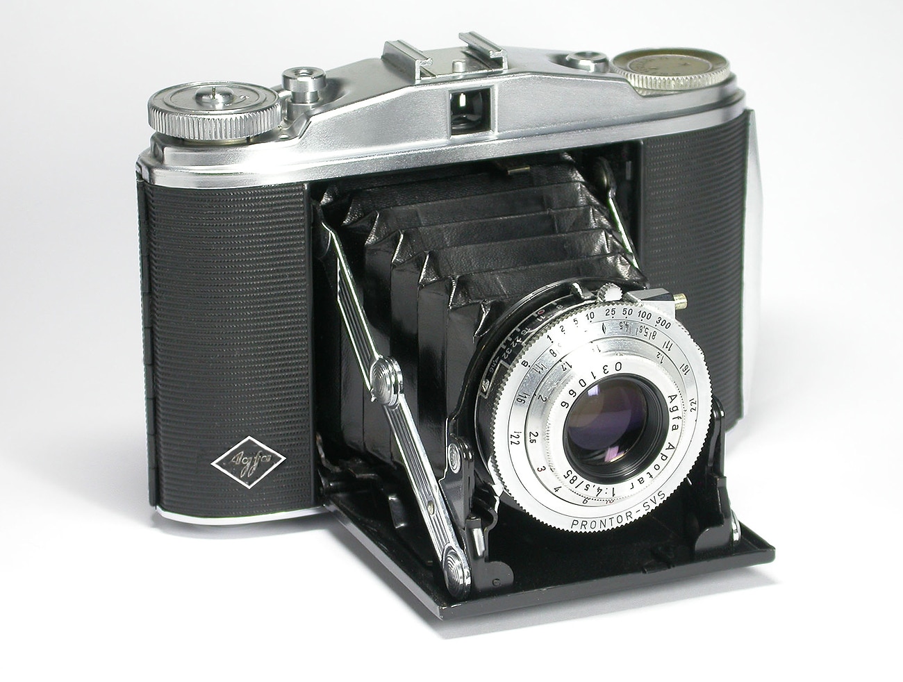 Vom Typ Isolette/Jsolette gibt es über 120 bekannte Variationen: Hier eine Isolette II, gebaut Anfang oder Mitte der 1950er-Jahre. Klapp-/Spreizenkamera für den Rollfilm 120 (Negativformat: 6 x 6 cm). Objektiv: Agfa Apotar 1:4,5/85 mm, Nr. 031066; Newton-/Fernrohrsucher. Verschluss: Prontor-SVS (Alfred Gauthier, Calmbach) mit Zeiten bis 1/300 Sekunde. Kunststoffbalgen; Doppelbelichtungssperre; Tiefenschärfenrechner.