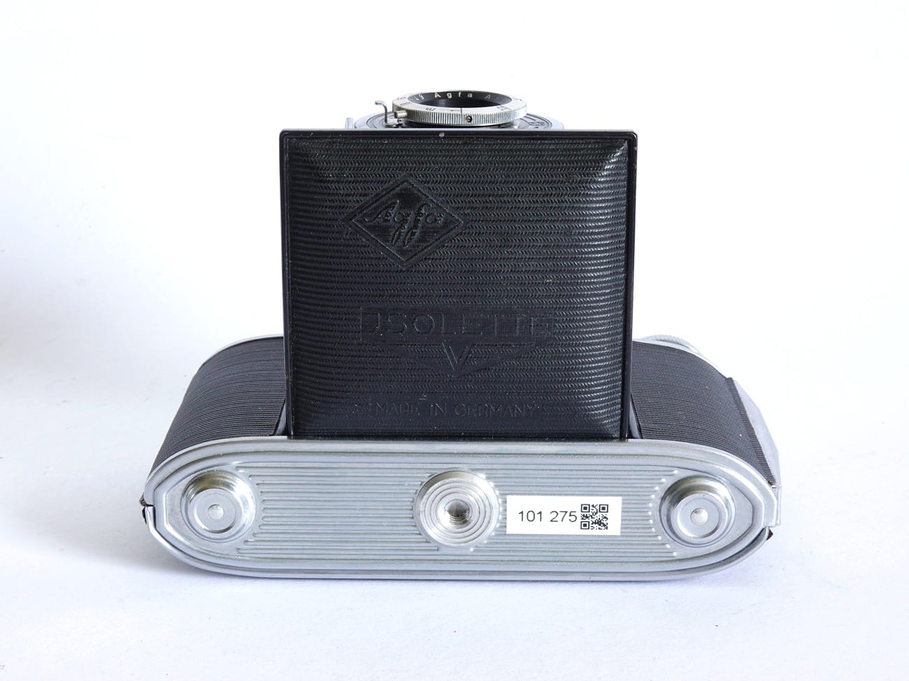 Die frühen Agfa-Isolettes hatten noch die Beschriftung mit „J“ statt „I“ am Anfang, also „Jsolette V“. In der Exportversion hieß die Isolette V „Ventura 66“.