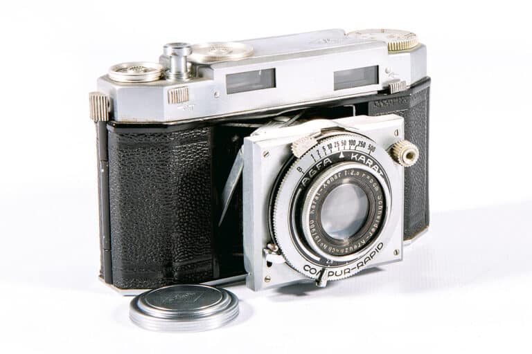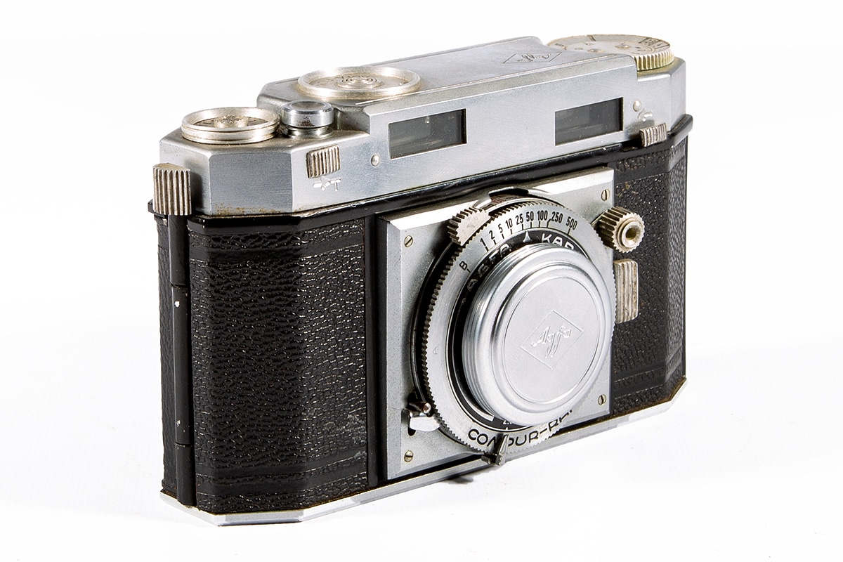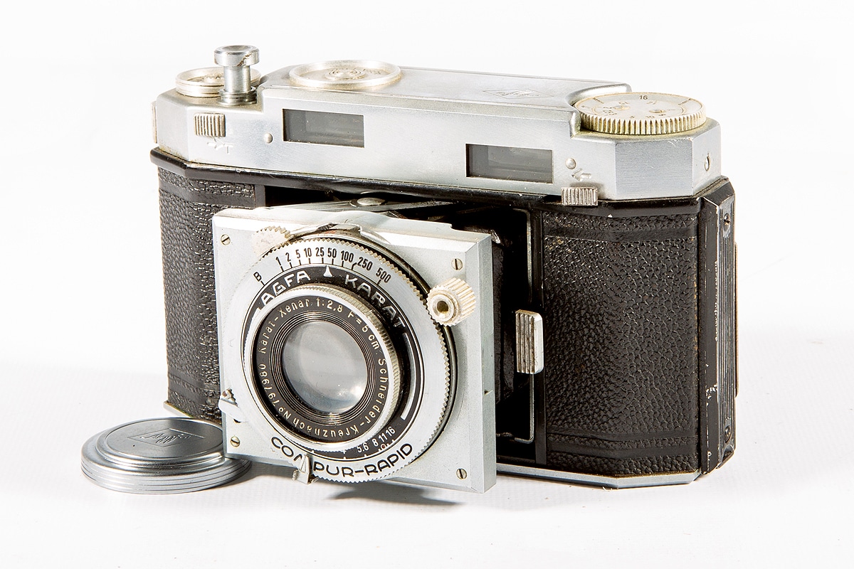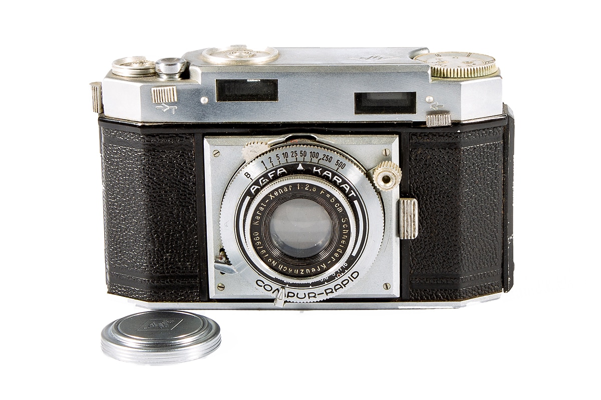 Messsucherkamera mit gekuppeltem Entfernungsmesser, Typ 2016. Objektiv: Schneider-Kreuznach Karat-Xenar 1:2,8/5 cm, Nr. 797980; originale Schutzkappe für das Objektiv (Leichtmetall mit Schriftzug „Agfa“) vorhanden. Verschluss: Compur-Rapid; der Auslöser kann bei Voreinstellung von „B“ mit einem Schieber für Langzeitbelichtungen arretiert werden. Filmmerkscheibe und Tiefenschärfenrechner in die Gehäusekappe integriert. Die in dieser Karat verwendeten Karat-Patronen erlaubten zwölf Aufnahmen im gängigen Kleinbildformat 24 x 36 mm. Der Film wanderte von einer Patrone in die andere und wurde nicht zurückgespult.