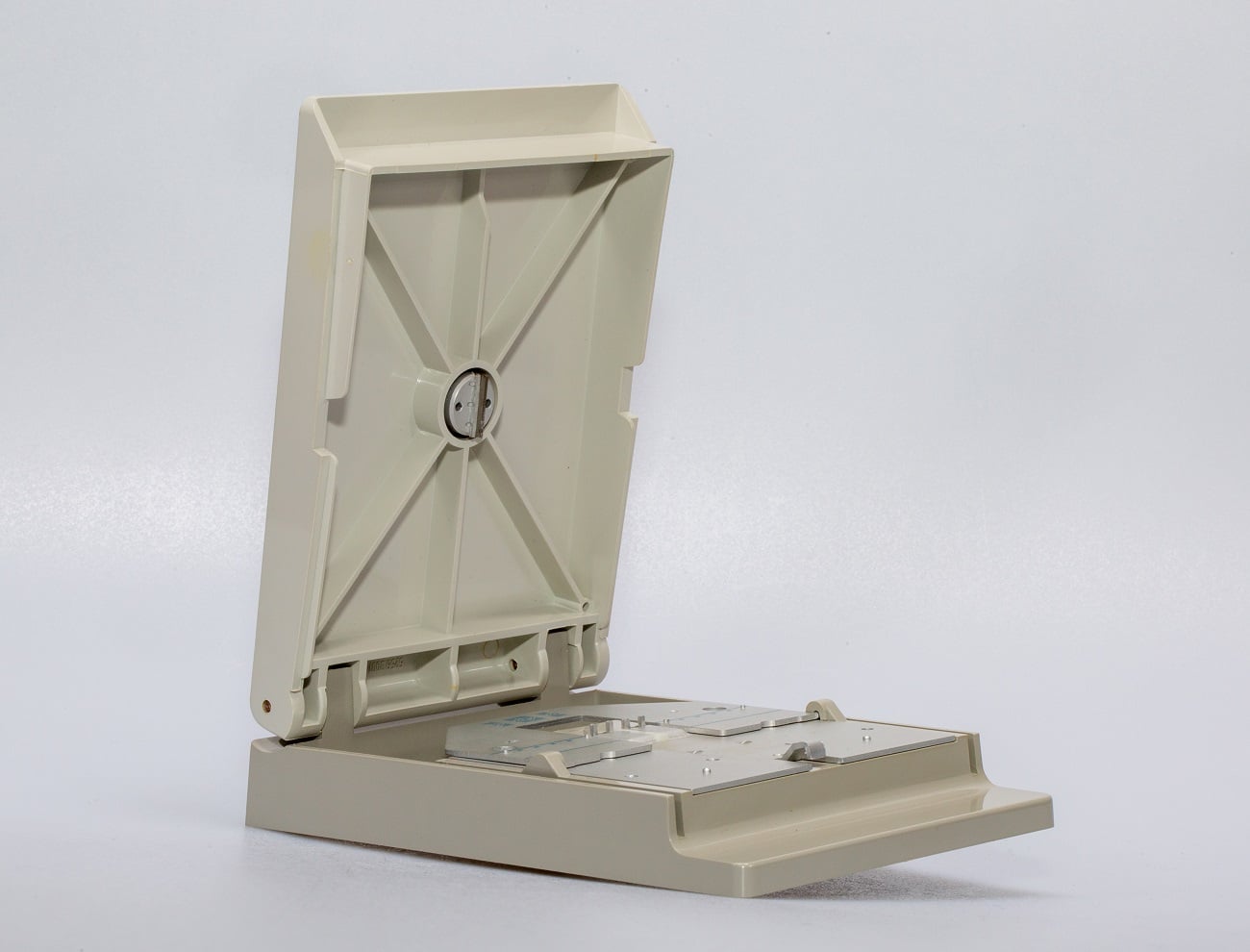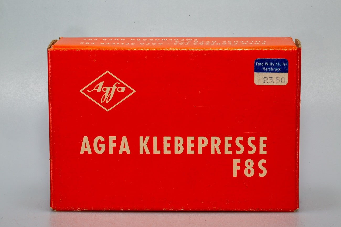 Klebepresse für Schmalfilm (Super 8), um 1970; manueller Schnitt der Filmenden, Verbindung durch Cine-Klebefolie. Damaliger Neupreis: 23,50 DM.