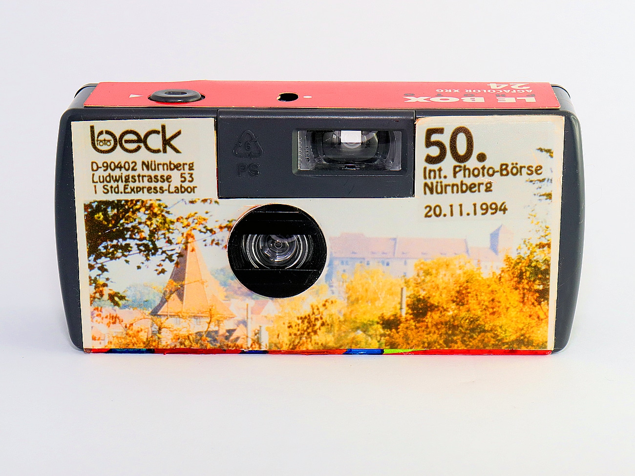 Der Nürnberger Fotohändler Till Beck war ein bekannter Mann in der europäischen Photographica-Szene. Foto Beck war ein großes und bekanntes Fotogeschäft in Nordbayerns größter Stadt, Nürnberg. In den 1980er Jahren stand auch der Fotobuchhandel und Fotoverlag von Till Beck, in dem es vom Auktionskatalog bis zum Nachdruck von alten Fotokatalogen alles gab, in hoher Blüte. Becks „Internationale Fotobörse Nürnberg“ war legendär. Aus Anlass der 50. Börse im November 1994 ließ die Firma eine Sonderserie Einwegkameras Agfa Le Box Panorama mit eigenem Design herstellen. Die Kamera war mit einem Negativfilm Agfacolor XRG mit 24 Aufnahmen geladen und bildete dank Fixfokusobjektiv ab 0,3 Meter scharf ab. Man sollte nur Außenaufnahmen machen und diese nur bei Sonnenschein oder leichter Bewölkung. Wie viele Exemplare unter die Leute gebracht wurden, ist nicht mehr nachvollziehbar.