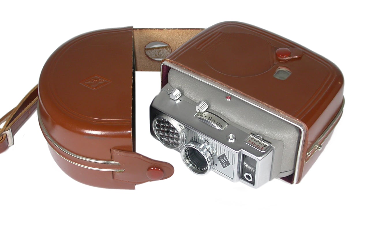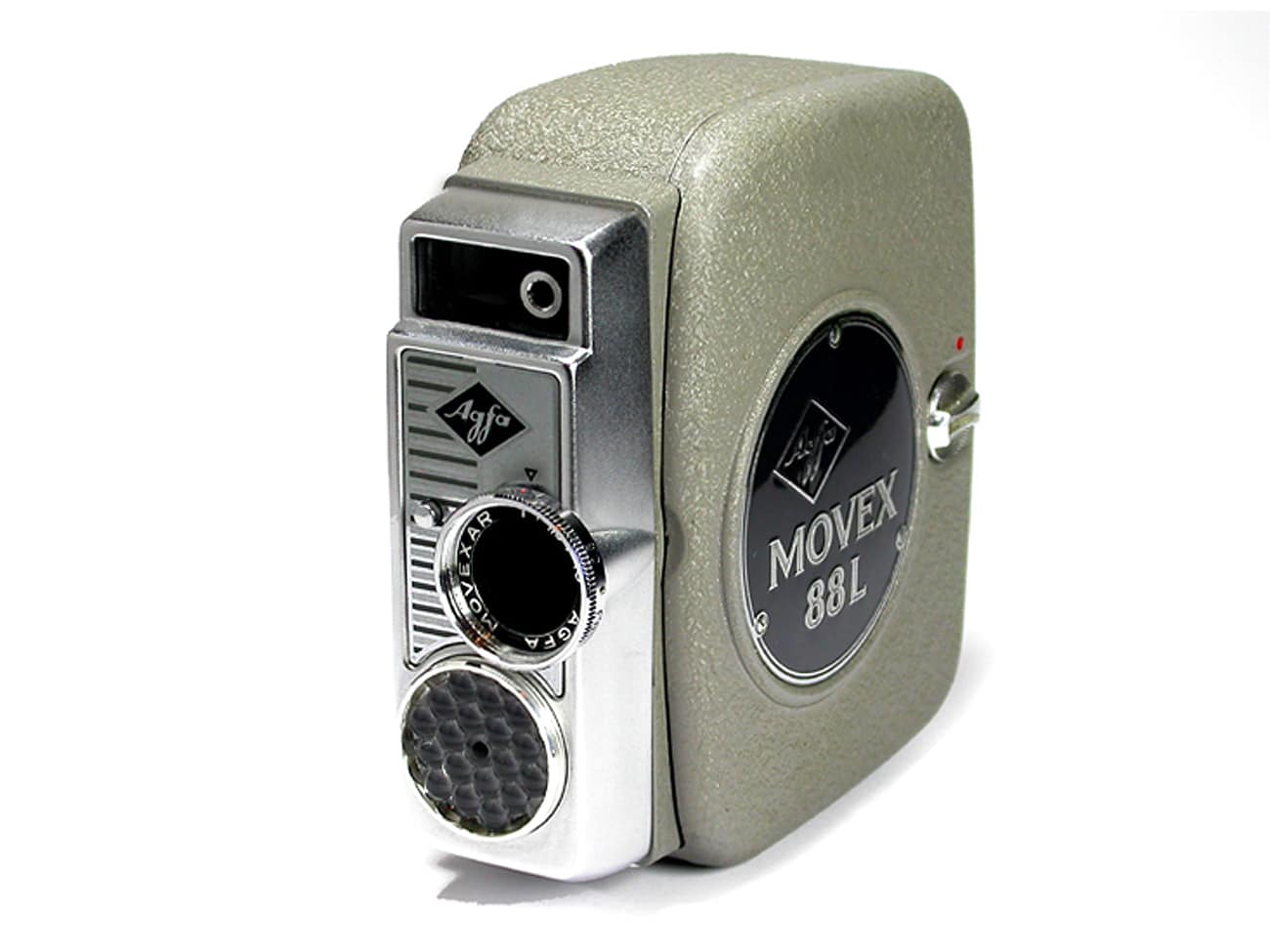 Schwere, robuste Doppel-8-Filmkamera von Agfa, hergestellt ab 1958. Objektiv: Agfa Movexar, 1:1,9/13 mm, in Unendlich-Stellung arretierbar; manuelle Fokussierung. Einzelbildschaltung und 16 Bilder/Sekunde; Federwerksantrieb; manuelle Belichtungssteuerung mittels eingebautem, gekuppeltem Belichtungsmesser (Selenzelle). Im Museum mit OVP und Bedienungsanleitung.