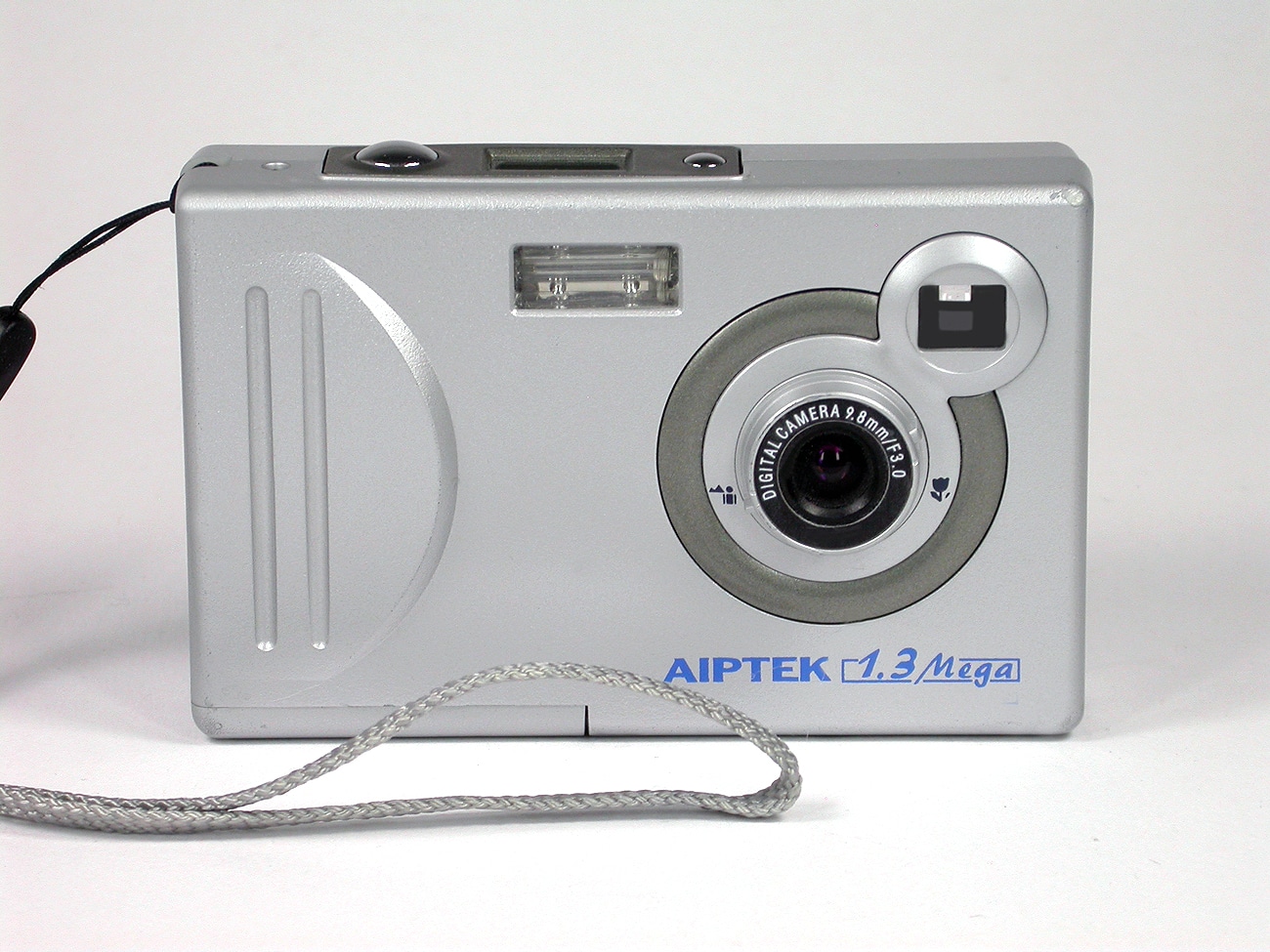 Kleine einfache Digitalkamera mit Objektiv 1:3,0/8,7 mm. Fixfokus, eingebauter Blitz, Selbstauslöser. Hergestellt in China. 64 MB SD-RAM, maximale Auflösung: 1280 x 960 Pixel. Läuft unter Windows 98 SE, ME, XP.