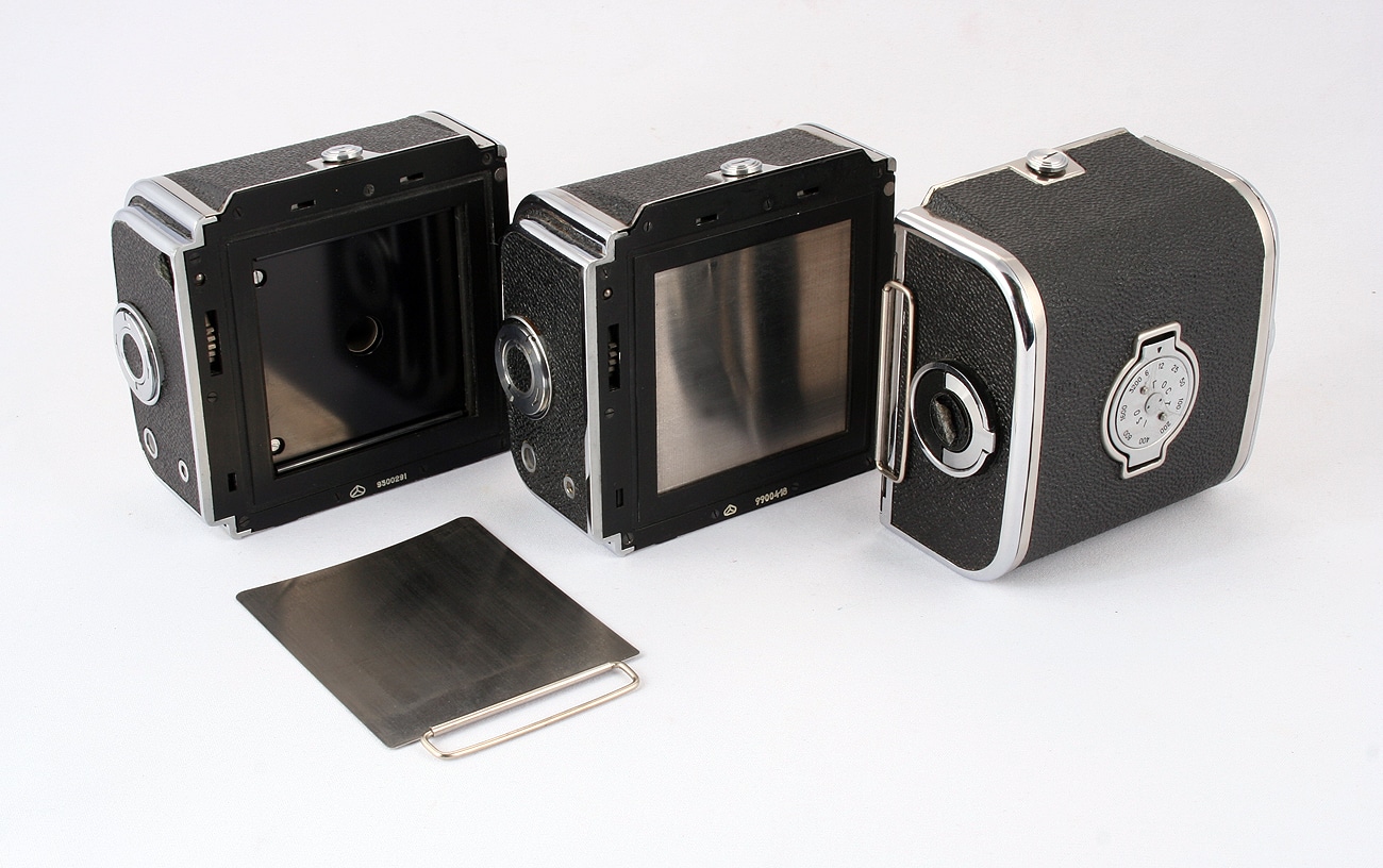 Hasselblad-Kopie aus Kiev (1980, damals noch UdSSR) mit auswechselbarem Faltlichtschacht und Klapplupe (optional ein TTL-Prismeneinsatz mit Diodenabgleich über Lichtwaage – nicht mit der Kamera gekuppelt), Fresnel-Einstellscheibe mit Mikroprismen/Schnittbild-Einstellhilfe, ISO-Blitzschuh und ISO-Buchse (umschaltbar FP/X), Metallschlitzverschluss (B, 1/2 bis 1/1.000 Sekunde, X-Synchronisation bis 1/30 Sekunde), Rückteilanschluss auch für Hasselblad-1000-Magazine. Modifiziertes Hasselblad-1000-Objektivbajonett, hier mit Standardobjektiv MC Volna-3 1:2,8/80 mm. Rollfilm 120/620/B2 für Aufnahmen im Format 6 x 6 cm.