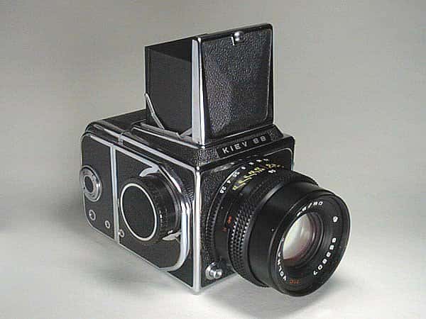 Passende Wechselobjektive und den optionalen Prismensucher gibt es auf der Seite Kiev 88 TTL.