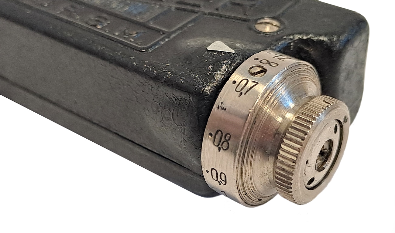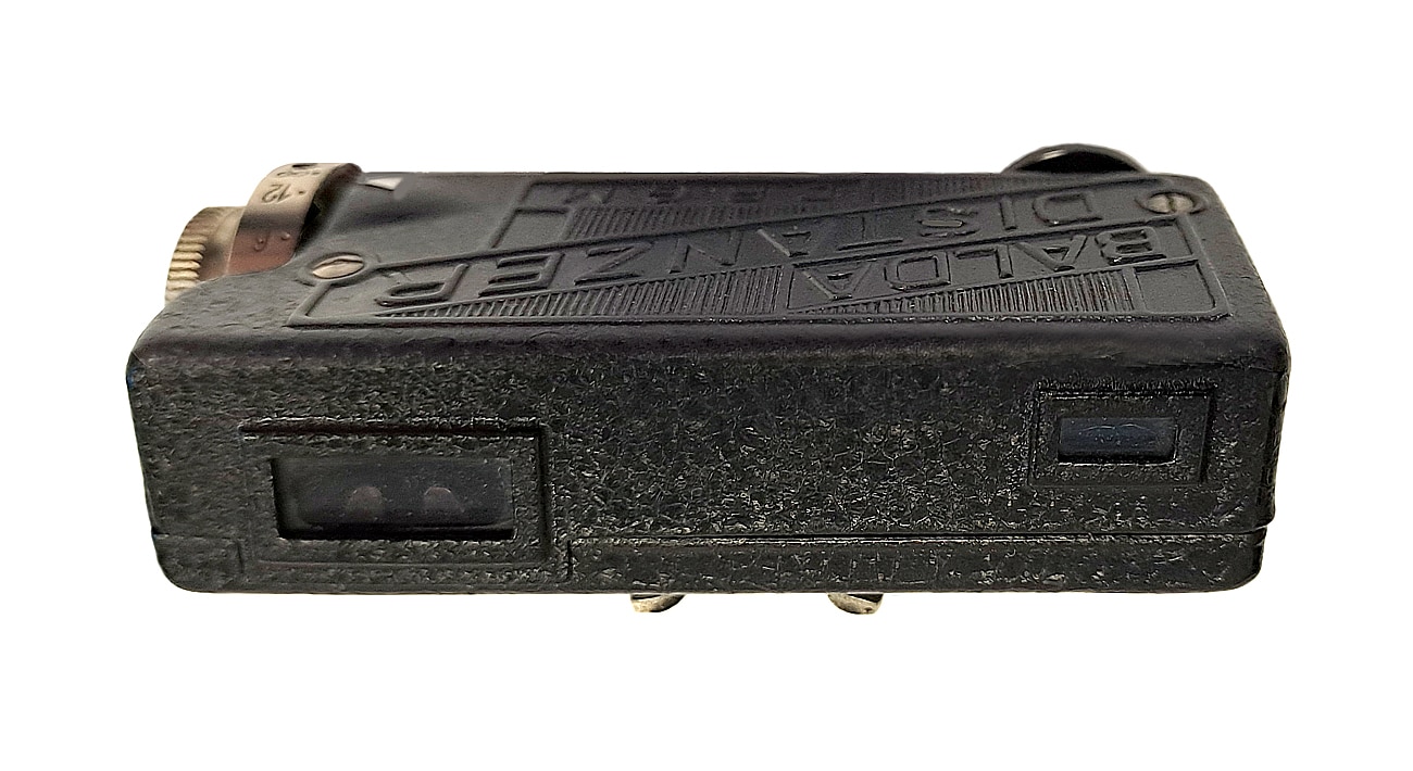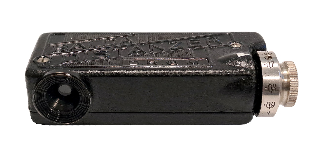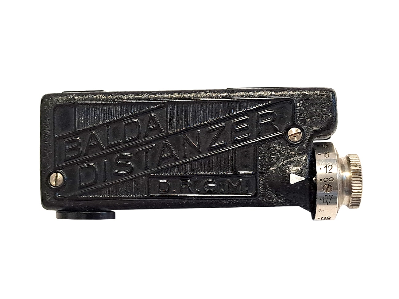 Wie schon der Name sagt, ist der „Balda Distanzer“ ein Entfernungsmesser, also ein Zubehörteil, das die richtige Distanz zwischen Kamera und Aufnahmeobjekt bestimmt. Laut Bedienungsanleitung dient der Distanzer, der vermutlich aus den 1930er Jahren stammt, „insbesondere zur Einstellung für Nahaufnahmen, da über 6 m die Tiefenschärfe unbedeutenden Einfluss hat. Der Distanzer wurde konstruiert, um die nahen Entfernungen messen zu können.“ Was damals halt „Nahaufnahme“ so bedeutete: Kürzeste Einstellung ist 70 cm, höchste Zahl auf der drehbaren Skala vor unendlich ist 12 Meter.