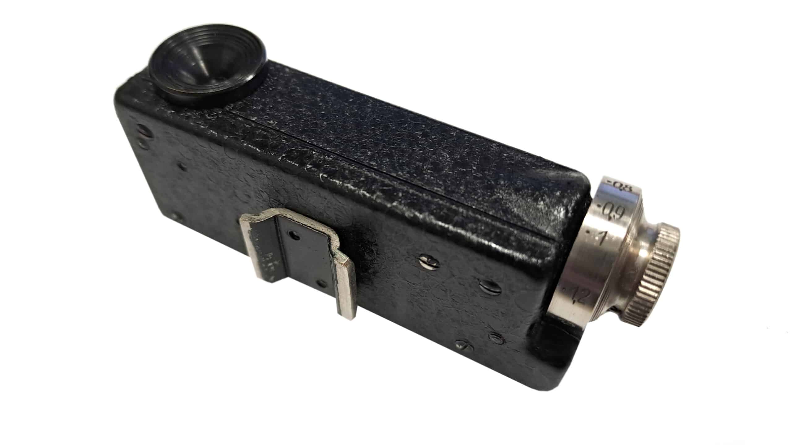 Der Schnittbildentfernungsmesser ist in einem äußerst stabilen verschraubten Metallgehäuse untergebracht und wurde mit einem eigenen „Führungsschuh“ ausgeliefert, der mittels kleiner Schräubchen an der Rollfilm- oder Plattenkamera neben dem Sucher angebracht werden musste. Das Gegenstück am Entfernungsmesser passt nämlich nicht in den damals auch noch gar nicht üblichen Zubehörschuh, sondern ist wenige Millimeter schmäler. Damit wäre das eine wackelige Angelegenheit – oder Balda hat bewusst damit einen gewissen Spielraum für die Ausrichtung auf das Objekt geschaffen. Beim Museumsexemplar war zwar die etwas ramponierte Originalbedienungsanleitung sowie ein offenbar originales Lederetui dabei, aber dieser „Führungsschuh“ fehlt. Wahrscheinlich befindet er sich noch an irgend einer alten Rollfilmkamera…