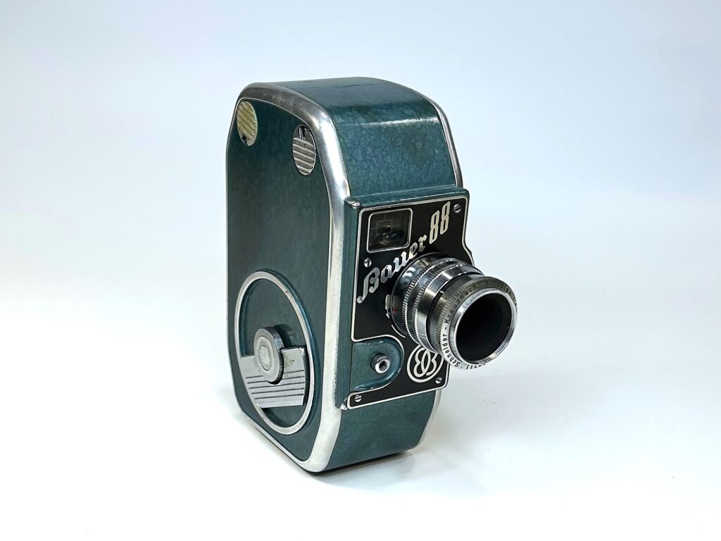 Die Bauer 88 ist ein typisches Beispiel für die Schmalfilmkameras der 1950er Jahre, die auf einfache Bedienung und Zuverlässigkeit ausgelegt waren. Mit ihrem robusten Design bietet sie vielseitige Einsatzmöglichkeiten für Hobbyfilmer. Heute ist sie ein Sammlerstück für Liebhaber analoger Filmtechnik.