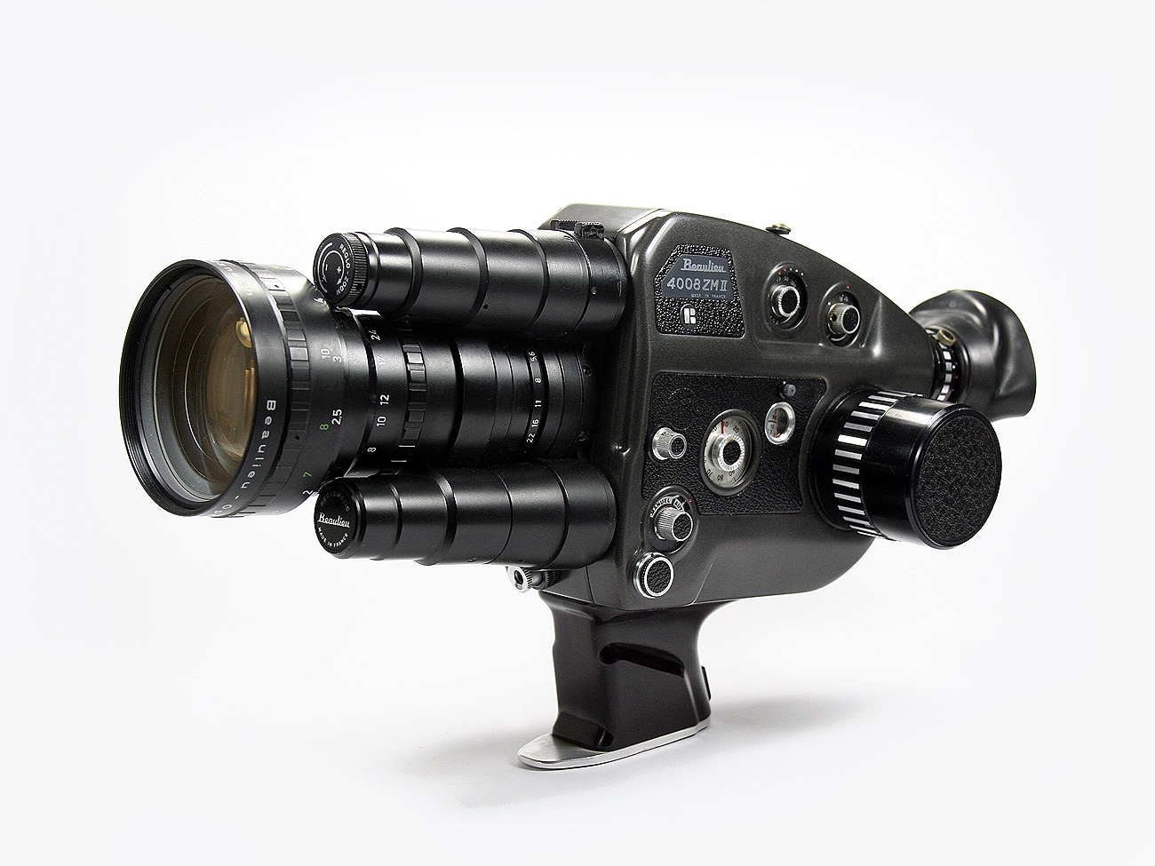 Hochwertige Super-8-Filmkamera aus Frankreich, hergestellt von 1971 bis 1976. Für Wechselobjektive mit C-Mount, hier mit Zoomobjektiv Schneider-Kreuznach Optivaron 1:1,8/6-66 mm; manuelle Fokussierung; Brennweitenverstellung manuell oder motorisch. Reflexsucher. Elektrischer Filmtransport (Einzelbildschaltung sowie 2, 4, 8, 18, 25, 36, 50 oder 70 Bilder pro Sekunde); TTL-Belichtungsmessung, Belichtungsautomatik. Die Stromversorgung erfolgte durch einen eingesetzten Akku (das dicke „Rad“ rechts hinter den Bedienungselementen). Blitzsynchronkontakt. Besonders auffällig: die teleskopartig gestalteten, parallel zum Objektiv angeordneten Gehäuse der Stellmotoren. Andere Version dieser Kamera: Beaulieu 4008 ZM II (Variogon 1:1,8/7-56 mm).