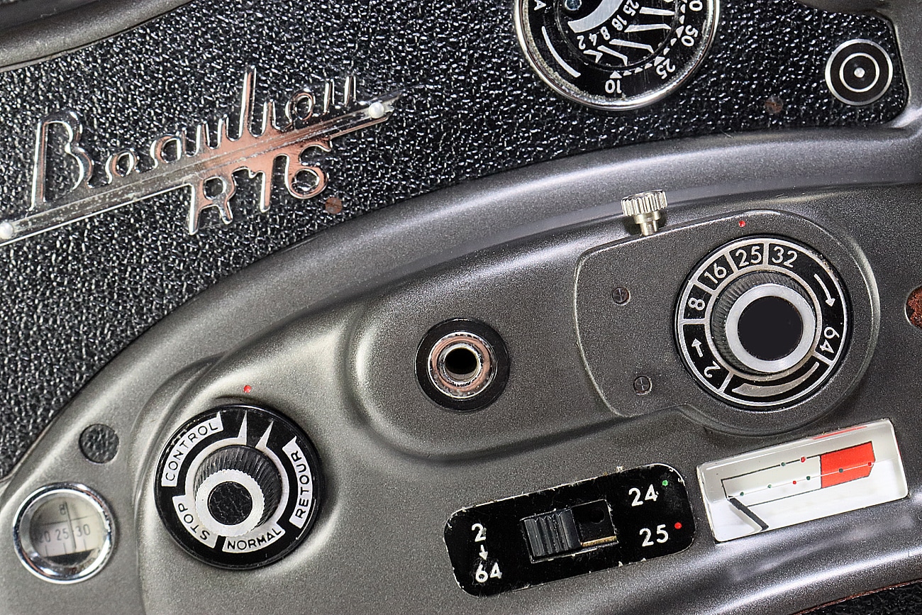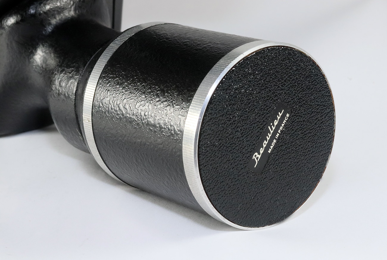 Hochwertige Filmkamera für den 16-mm-Profifilmer. Hersteller: Beaulieu Cinema, Romorantin, Frankreich, ab 1965. Gänge: 2 + 4 + 8 + 16 + 24/25 + 32 + 48 + 64 und Einzelbild. Elektromotorischer Antrieb, Reflexsucher, Tonsynchronkontakt, manuelle Filmrückwicklung, Wechselobjektive C-Mount (hier mit Zoom-Objektiv P. Angenieux Paris Angenieux-Zoom Type 10 x 12 B, 1:2,2/12-120 mm, Seriennummer 1361397; kürzeste Entfernungseinstellung: etwa 1,5 Meter). Filmvorrat: 30-Meter-Spule und wahlweise 60-Meter-Kassette mit Mikromotor (oben aufsetzbar).