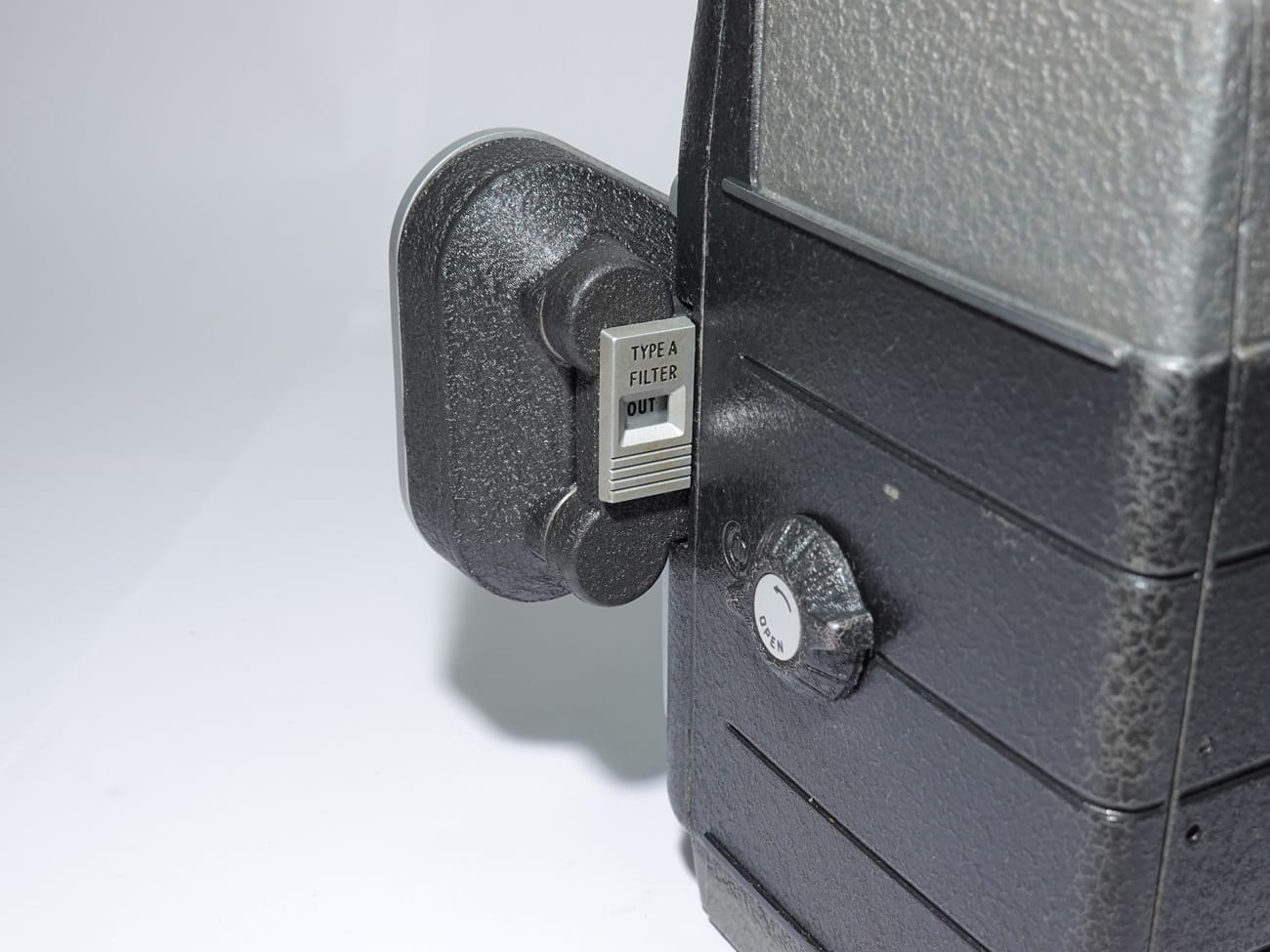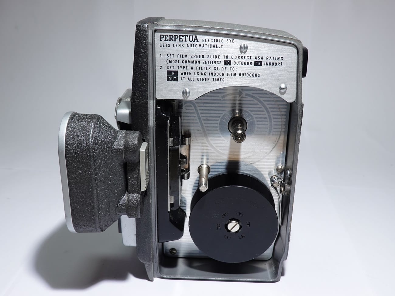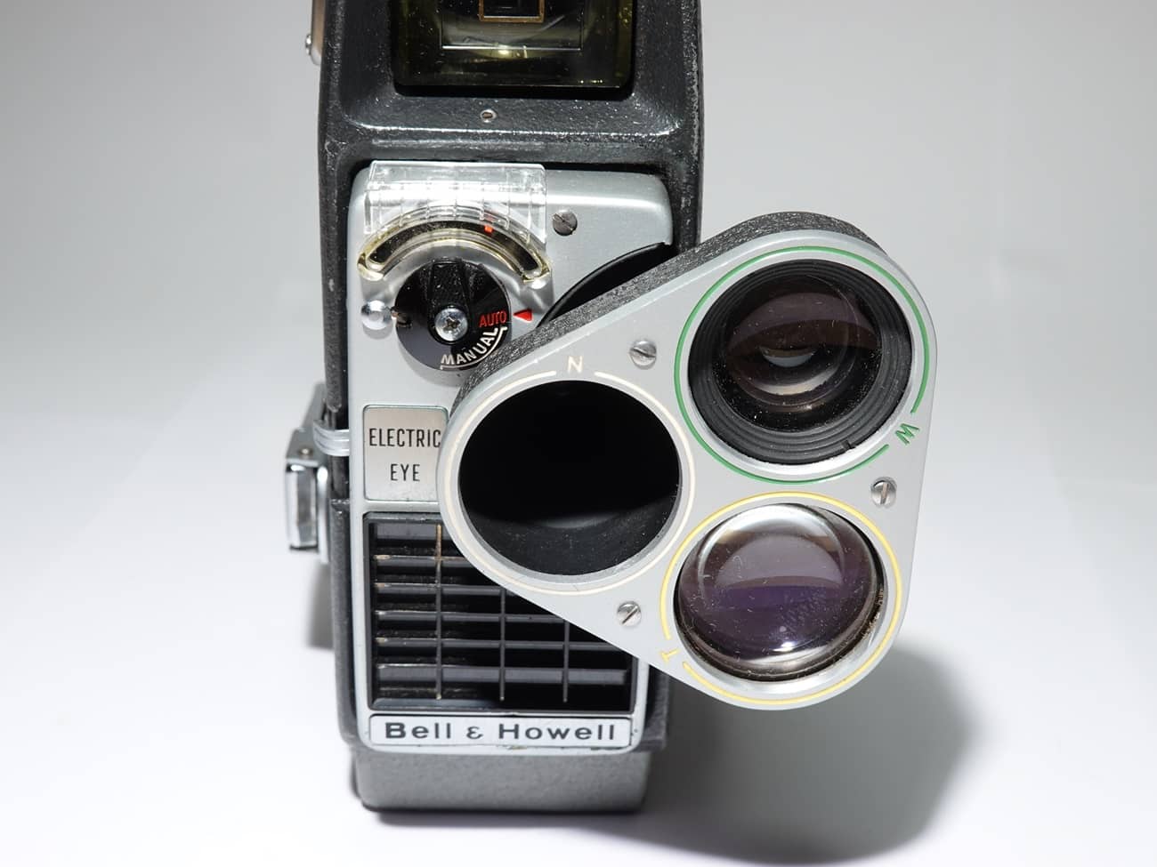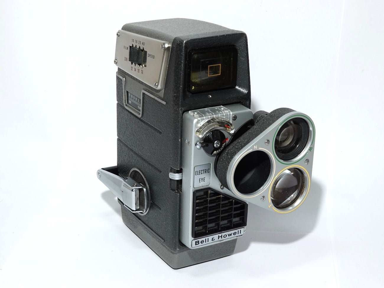 Schmalfilmkamera für Doppel-8-Spulen, hergestellt von Bell & Howell (USA) ab 1959; dieses Modell wird in der Anleitung auch als „393 E Electric Eye Camera“ bezeichnet. Objektivrevolver (Normalbrennweite als Grundobjektiv 1:1,8/10 mm im Kameragehäuse, Weitwinkel 6,5 mm und Tele 25 mm als Vorsatzobjektive im Revolver); Fixfokus. Durchsichtsucher mit verschiedenen Rahmen für die Motivauswahl entsprechend der aktuell eingestellten Brennweite. Federwerksantrieb (Einzelbild; 16 Bilder pro Sekunde); Belichtungsmessung durch Selenzelle unterhalb des Objektivs; automatische oder manuelle Belichtungssteuerung. Handschlaufe; Kameratasche.