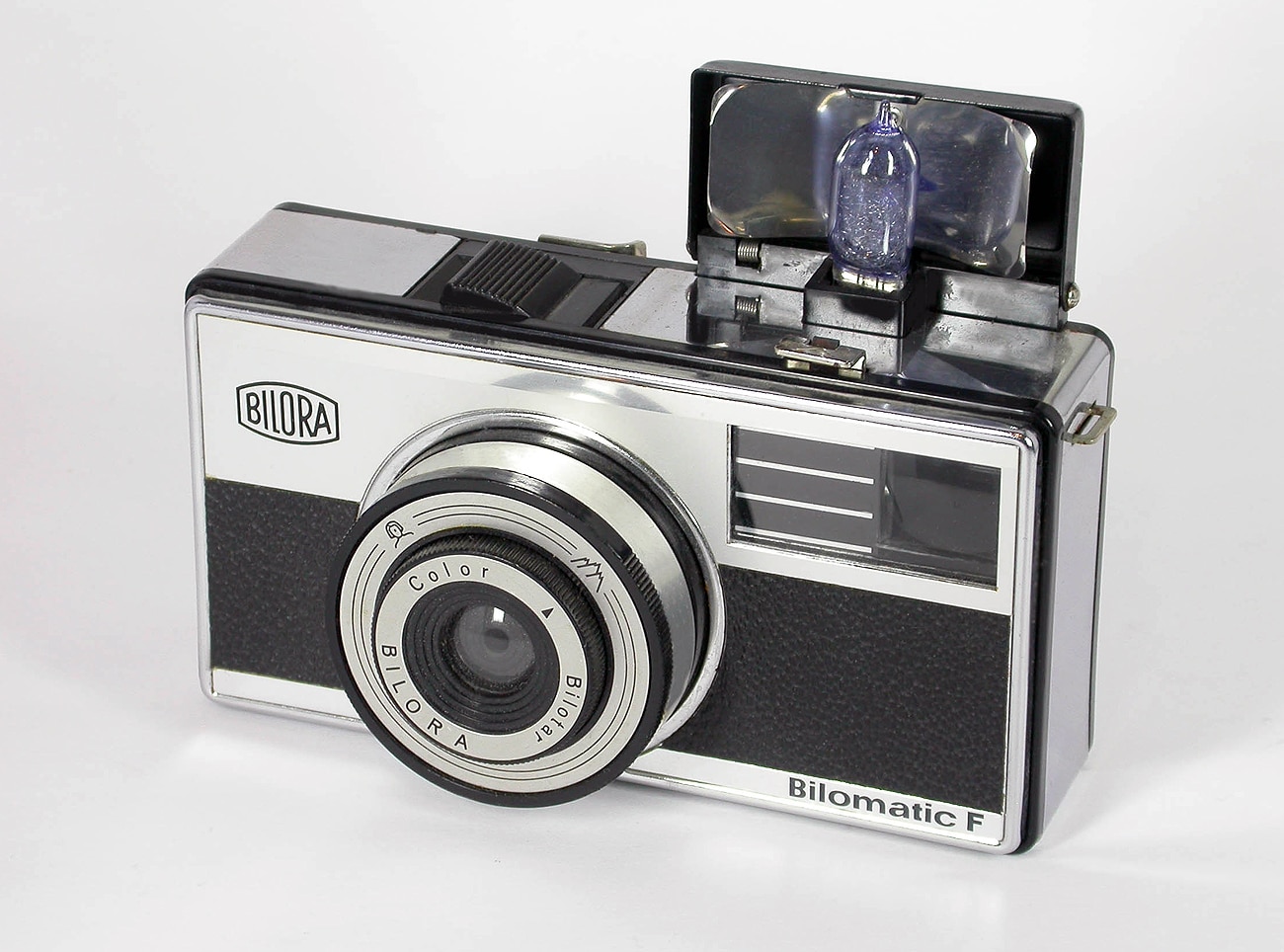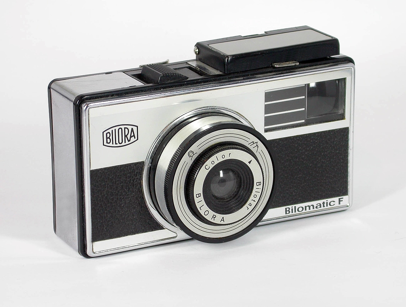 Ansprechende Sucherkamera für den 126-PAK-Kassettenfilm, hergestellt ab 1966. Objektiv: Bilora Color Bilotar 1:11,0/40 mm. Verschluss: 1/50 bis 1/100 Sekunde. Eingebautes Blitzgerät für Birnchen. Die Bilomatic F wurde 1964 zuerst als Ikomatic F für Zeiss Ikon entwickelt und hergestellt; ab 1966 wurde sie unter eigenem Logo und Namen vertrieben. Filmtransport mit Schnellschalthebel. 15-Volt-Anoden-Batterie für den eingebauten Blitz.