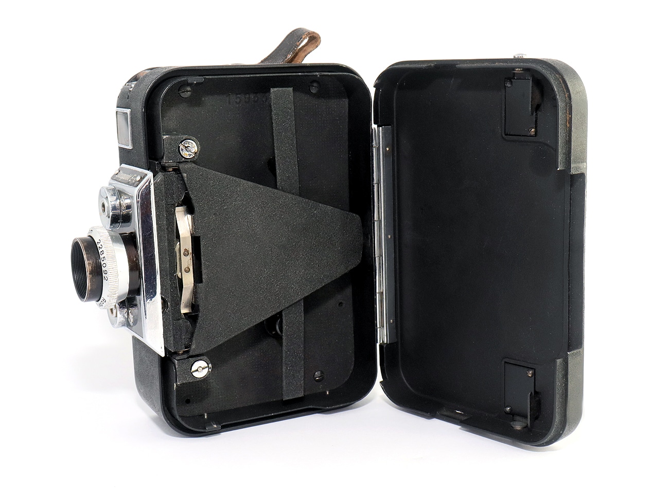 Der Federwerksantrieb, der den Film in einer Agfa-Movex-Kassette mit 16 Bildern pro Sekunde transportierte, reichte für etwa 30 Sekunden Laufzeit. Auch Einzelaufnahmen waren möglich. Das Fixfokus-Objektiv Rodenstock-Ronar, ein Triplet mit 1:1,9/10 mm, kann bis 16 abgeblendet werden und trägt beim Museumsexemplar die Seriennummer 2285092. Im Body ist die Nummer 159336 eingraviert, in der Rückwand die Zahl 601. Oberhalb der Kurbel ist eine Tabelle für die nutzbare Tiefenschärfe mit oder ohne (Tele-) Vorsatzlinse angebracht.