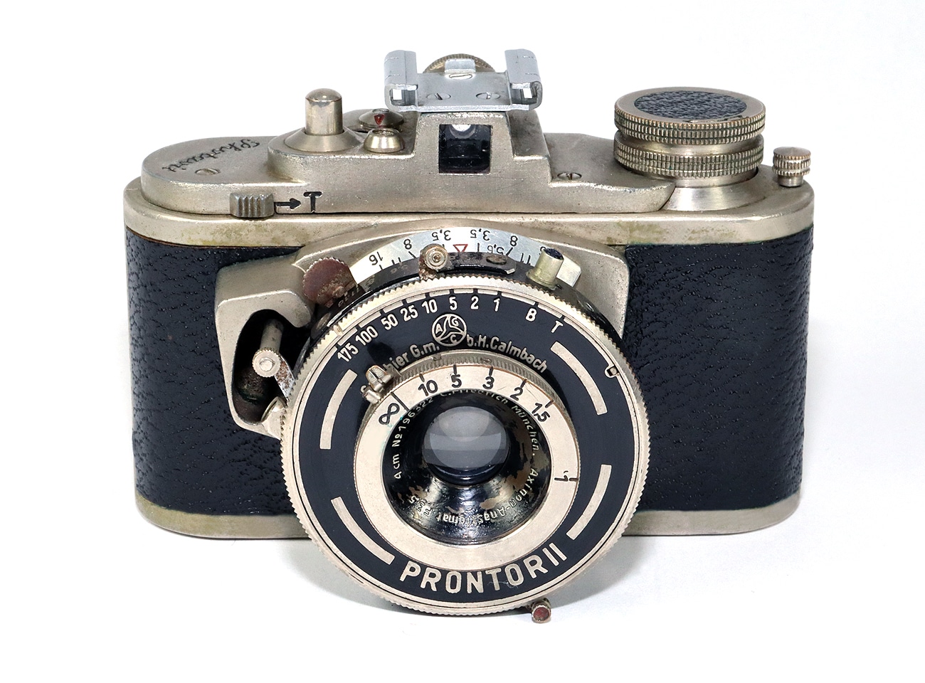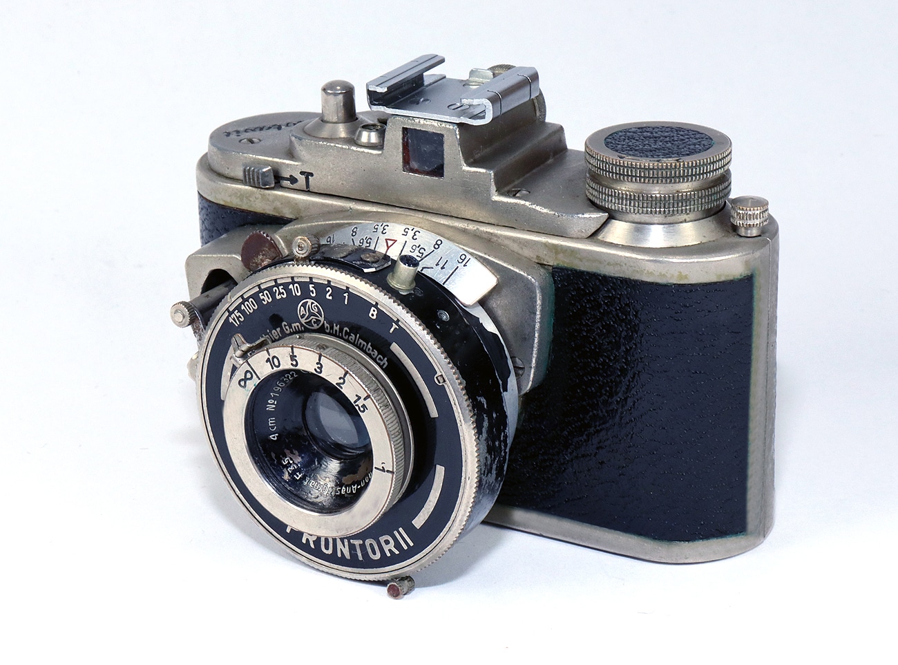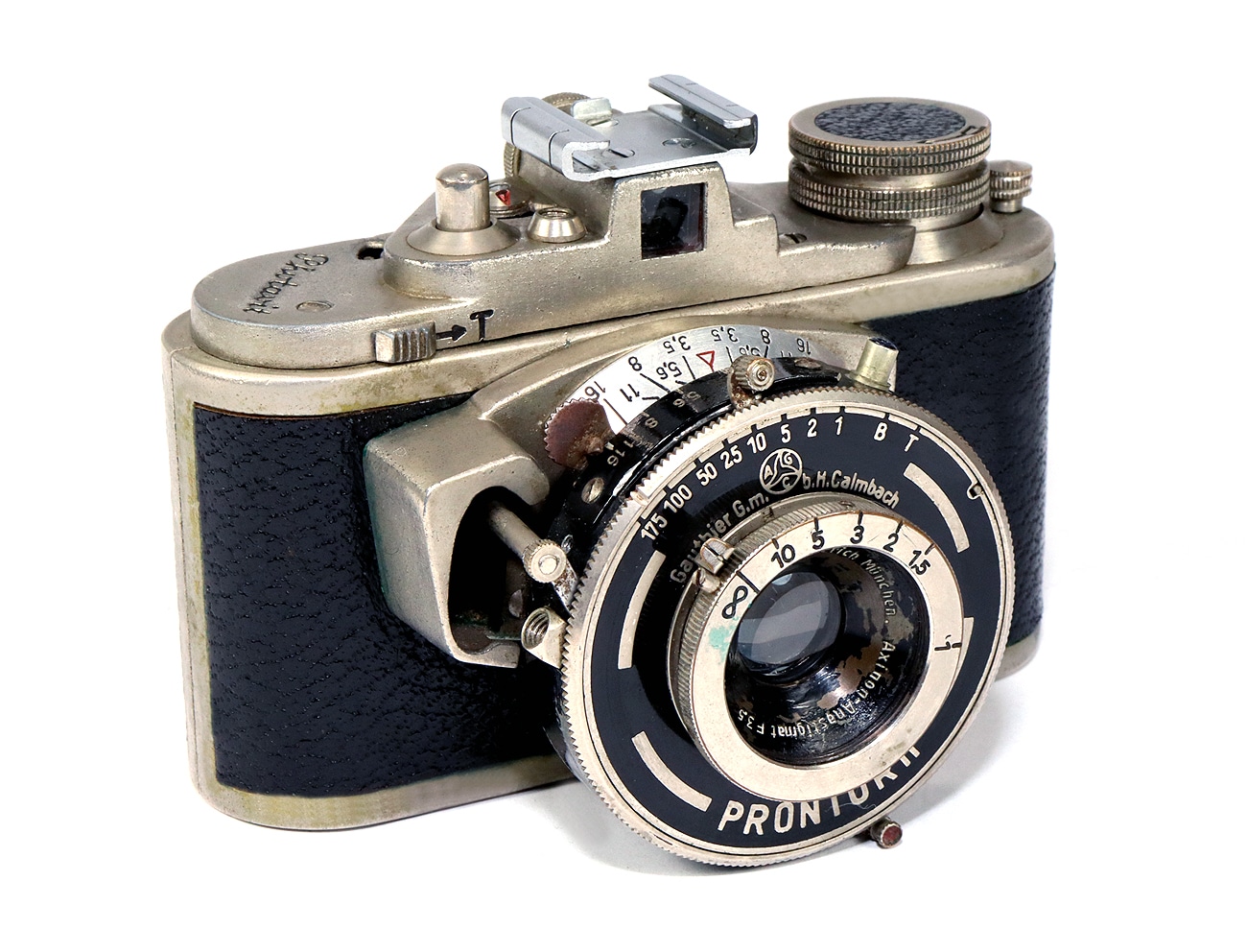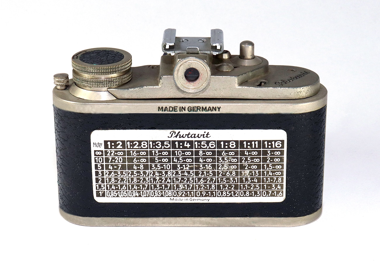 Miniaturisierte Sucherkamera (ab 1947) für den Kleinbildfilm 135 (Negativformat 24 x 24 mm) in speziellen Patronen. Hier eine frühe Version mit dem Objektiv: C. Friedrich München Axinon-Anastigmat 1:3,5/4,0 cm Seriennummer 196322. Newton-/Fernrohrsucher. Verschluss: Prontor II (Gauthier) mit B, 1 bis 1/175 Sekunde), Blitzanschluss, Selbstauslöser. Auf der Rückseite eine Belichtungstabelle.