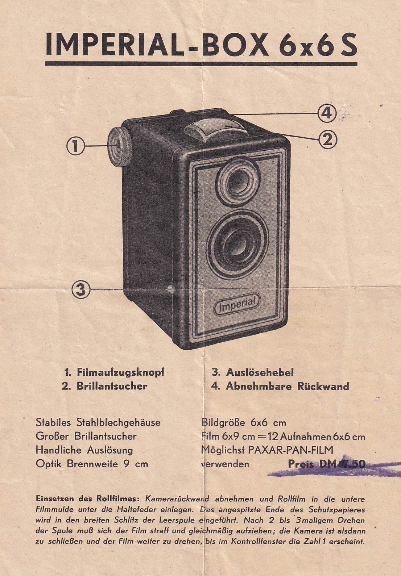 Boxkamera für das Aufnahmeformat 6 x 6 cm auf Rollfilm 120, hergestellt von Carl Braun, Nürnberg, ab 1951. Meniskus Frontlinse, Einfachverschluss, Stahlgehäuse (auch als Sondermodell für die Kaufhaus-Marken Reporter und Nimco). Da das 6 x 6-Format eine Unterscheidung zwischen Quer- und Hochformat überflüssig macht, besitzt die Kamera nur einen einzigen, fest eingebauten Brillantsucher. Sie nähert sich damit dem Erscheinungsbild einer zweiäugigen Spiegelreflexkamera an.
