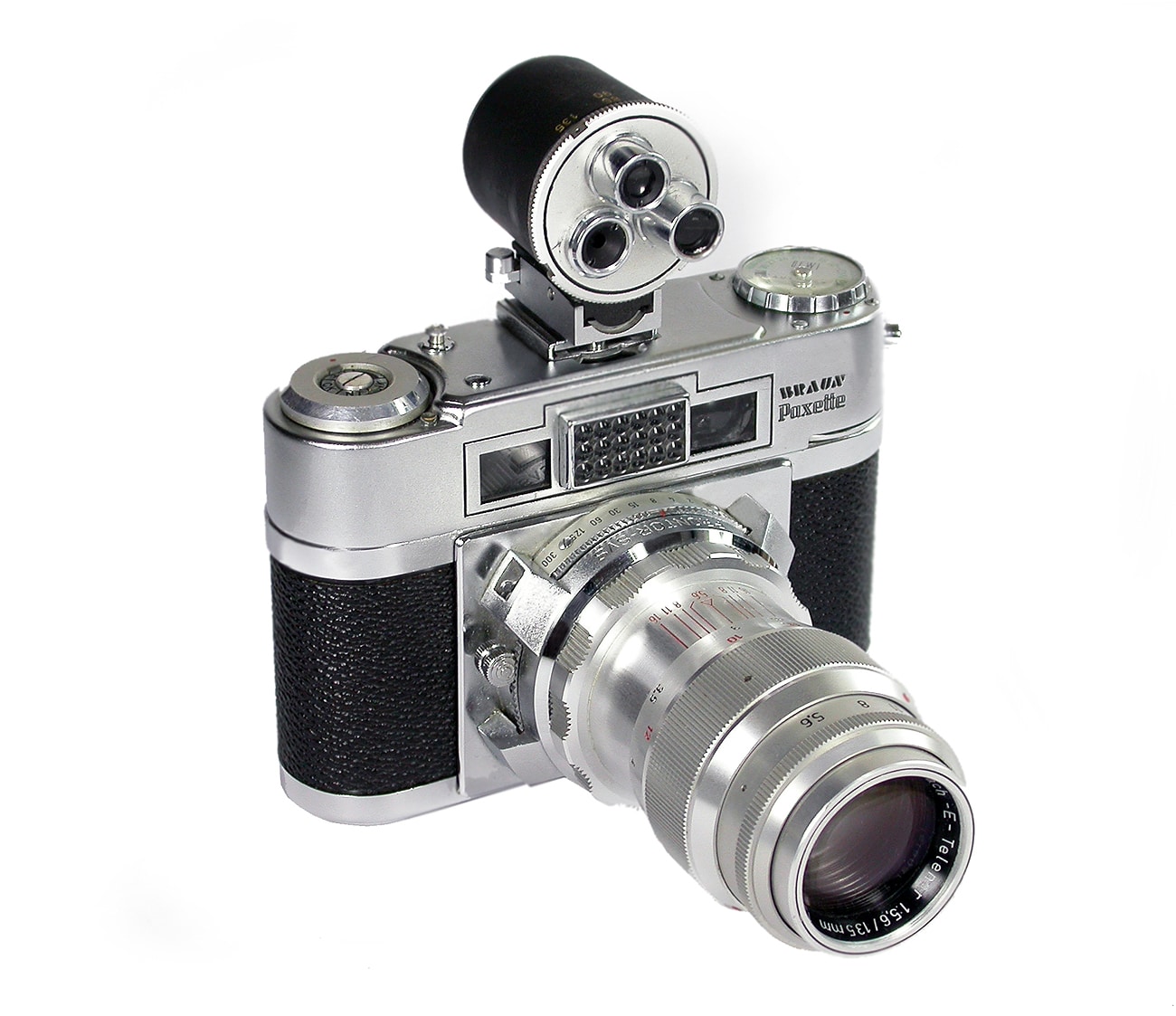 Messsucherkamera von Carl Braun, Nürnberg, für den Kleinbildfilm 135 (Aufnahmeformat 24 x 36 mm), hergestellt zwischen 1957 und 1959. Manuelle Scharfeinstellung. Mechanischer Zentralverschluss Prontor-SVS (B, 1 bis 1/300 Sekunde). Integralmessung, manuelle Belichtungssteuerung. Wechselobjektive mit M-39-Gewinde, das aber nicht mit dem Leica-Gewinde kompatibel ist: Normalobjektiv z. B. Steinheil München 1:2,8/50 mm (wie hier im Bild). Es gab aber viele verschiedene Objektivausstattungen.