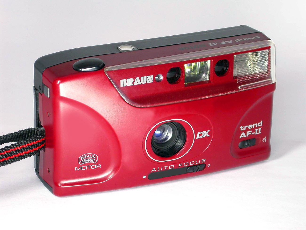 Gut ausgestattete Sucherkamera für den Kleinbildfilm 135 (Aufnahmeformat 24 x 36 mm), im Angebot von Carl Braun, Nürnberg, ab 1990. Objektiv: 1:4,5/34 mm, Autofokus, Programmautomatik, motorischer Filmtransport, DX-Codierung, eingebauter Elektronenblitz, Handschlaufe. Damals erhältlich in verschiedenen Farben.