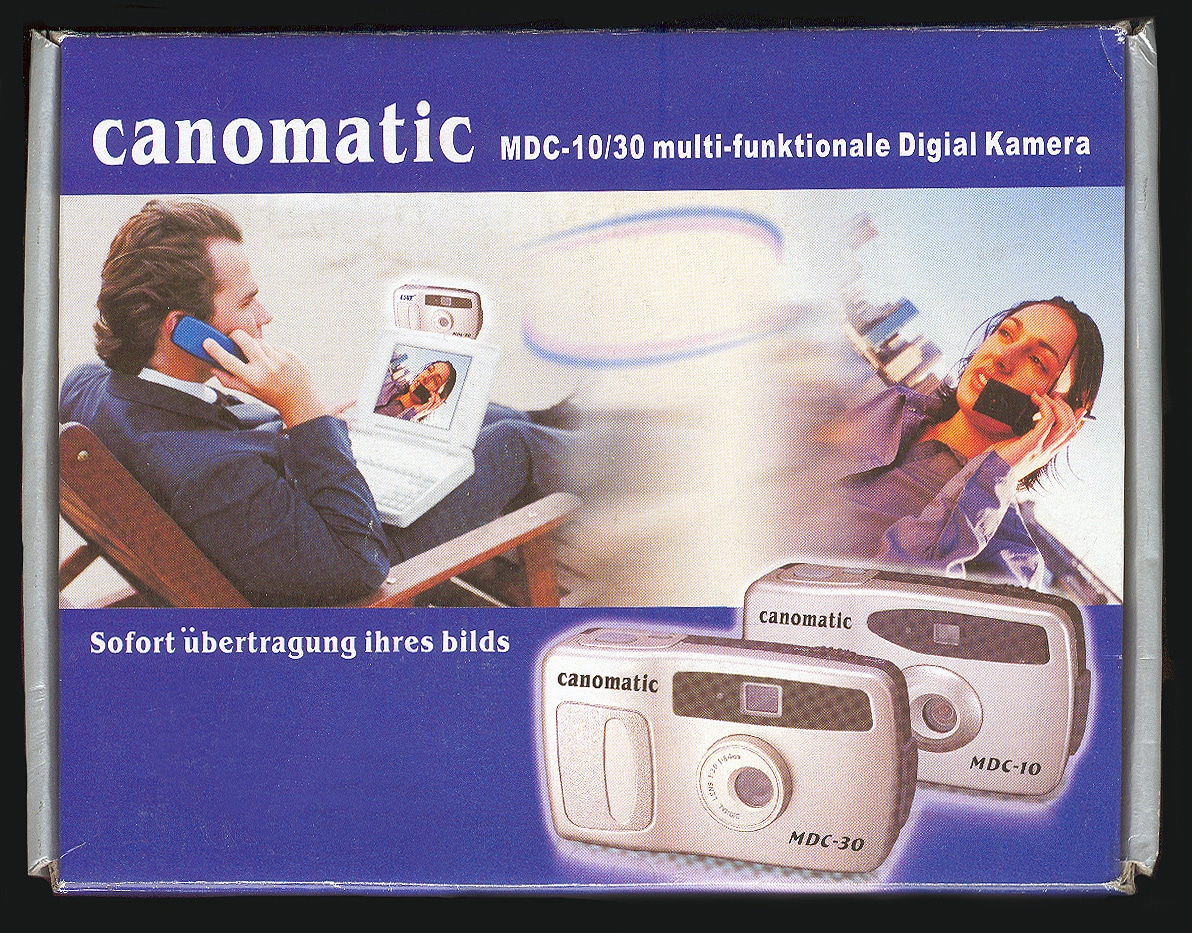 Erstaunlich: Dies ist eine digitale Canomatic, die sogar halbwegs funktioniert. Gut, wir können nicht so recht glauben, dass das Objektiv ein „Fünflinser“ ist mit Lichtstärke 1:3,0 (bei 6,4 Millimeter Brennweite), wie die Bedienungsanleitung vermeldet. Aber wir haben das Teil aus Neugier 2004 für 15,50 Euro bei eBay ersteigert, die beiliegende CD-Rom auf einem XP-Computer installiert, das USB-Kabel eingesteckt und – es hat funktioniert! Stromversorgung: 4 x 1,5-Volt-Batterien.