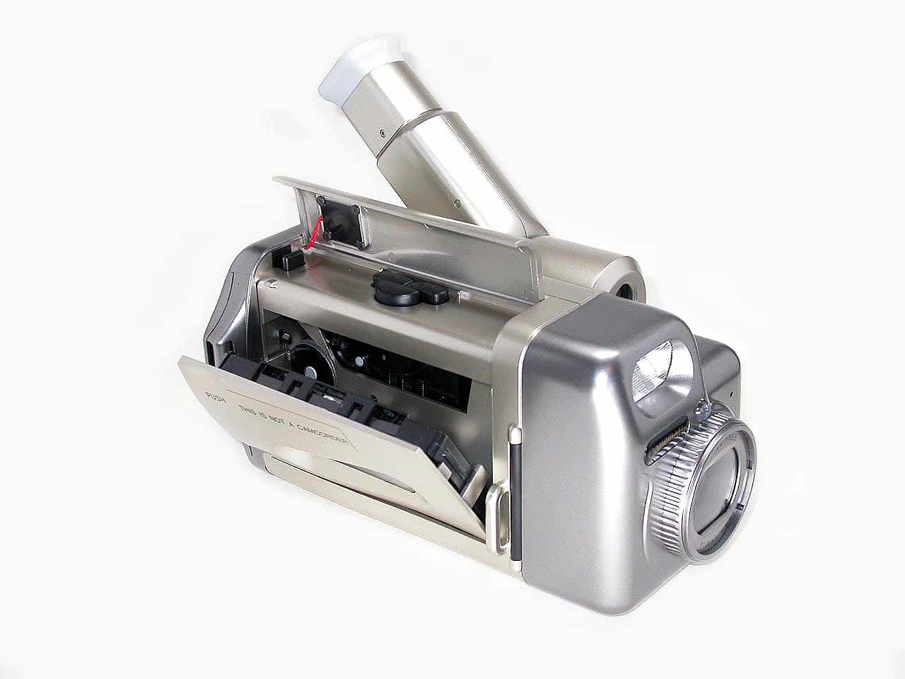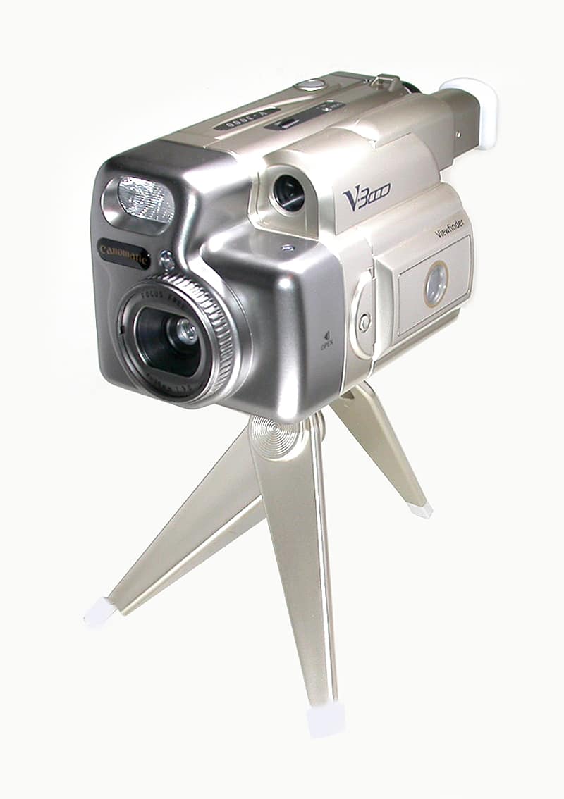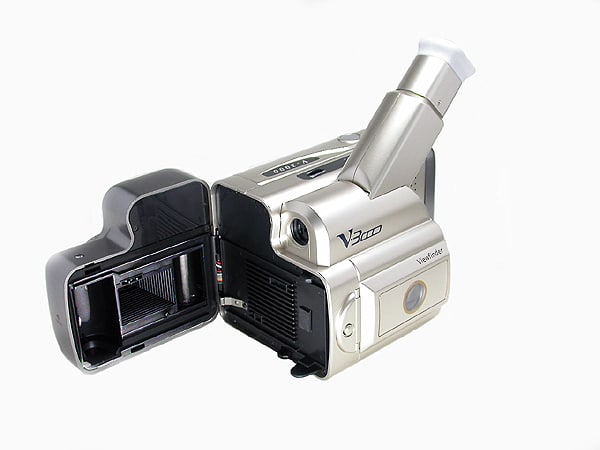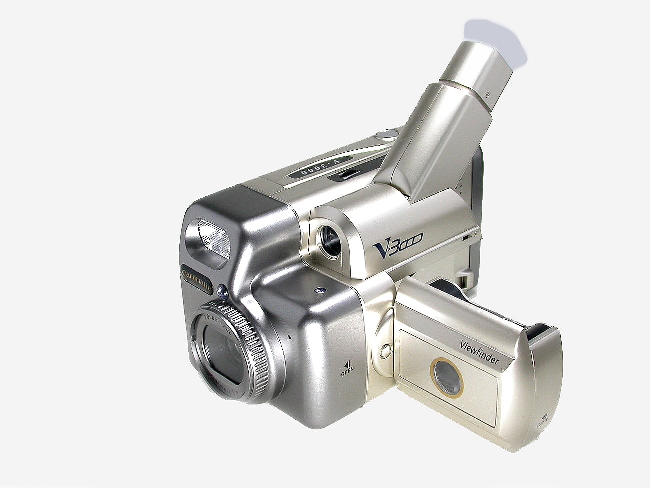 Einsamer Höhepunkt fernöstlichen Erfinderstrebens: der/die/das (Nichtzutreffendes bitte streichen!) Canomatic V-3000, gebaut 2002 oder 2003 in der VR China von Ouyama (New Taiwan). Eine Videokamera? Mitnichten. Die Canomatic V-3000 ist eine Kleinbildkamera (Film 135) und ein Kassettenabspielgerät in einem bis auf winzige Details perfekt anmutenden Gehäuse, das zufällig aussieht wie eine zeitgenössische Videokamera. Die Sucherkamera hat eine absolut tolle Ausstattung: Automatischer Filmtransport, automatische Rückspulung, eingebauter Elektronen-Blitz, Selbstauslöser, Display, Stativ.