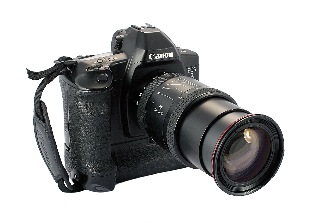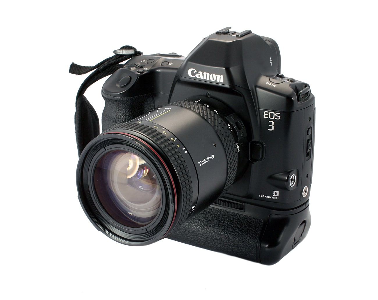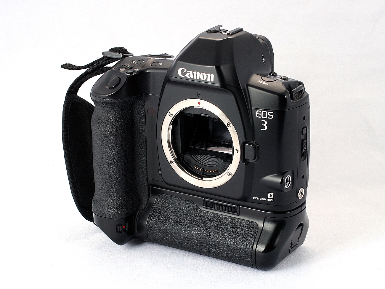 Kleinbild-Spiegelreflexkamera (1998 bis 2007) mit automatischer Scharfstellung und augengesteuerten Funktionen. Bajonett: Canon EF-Bajonett (EOS). Autofokus: C-MOS-Typ (Complementary Metal Oxyde Semiconductor), von einem ultraschnellen 32-bit-Microprozessor gesteuert; 15 x 8 mm AF-Meßfeld (= 23 Prozent der Bildfläche) mit 45 AF-Sensoren (entsprechend 10.724 Pixel), darunter 7 AF-Keuzsensoren; die jeweils aktiven AF-Sensoren werden im Sucher angezeigt; Wahl der AF-Sensoren: automatisch, manuell und durch Augensteuerung (daher der Name „Eye Control“). AF-Funktionen: 0ne-Shot-AF = statischer Autofokus mit Schärfepriorität und Al-Servo-AF = kontinuierlicher Autofokus mit Schärfenachführung und Auslösepriorität; manuelle Scharfeinstellung nach Sicht möglich.