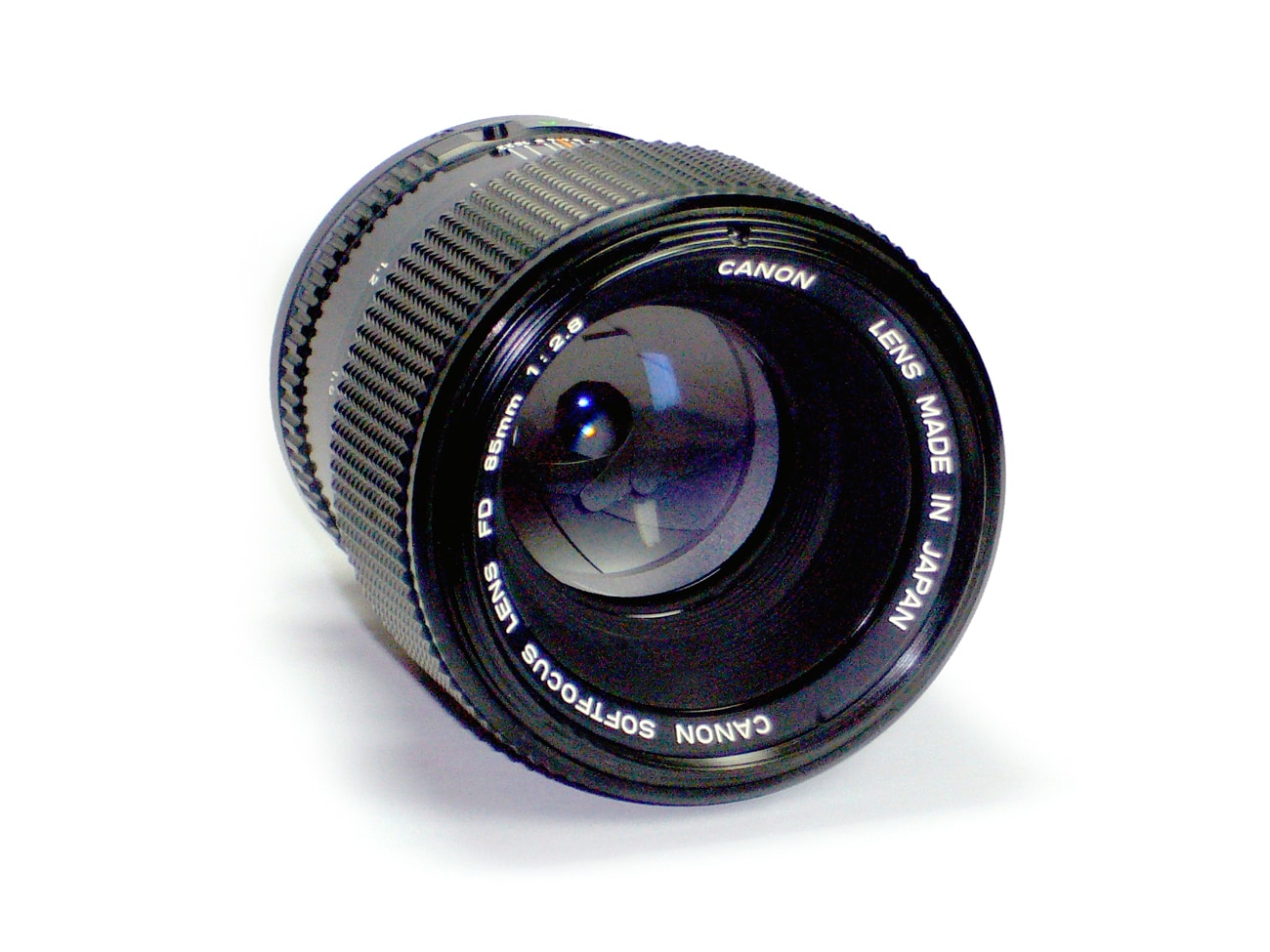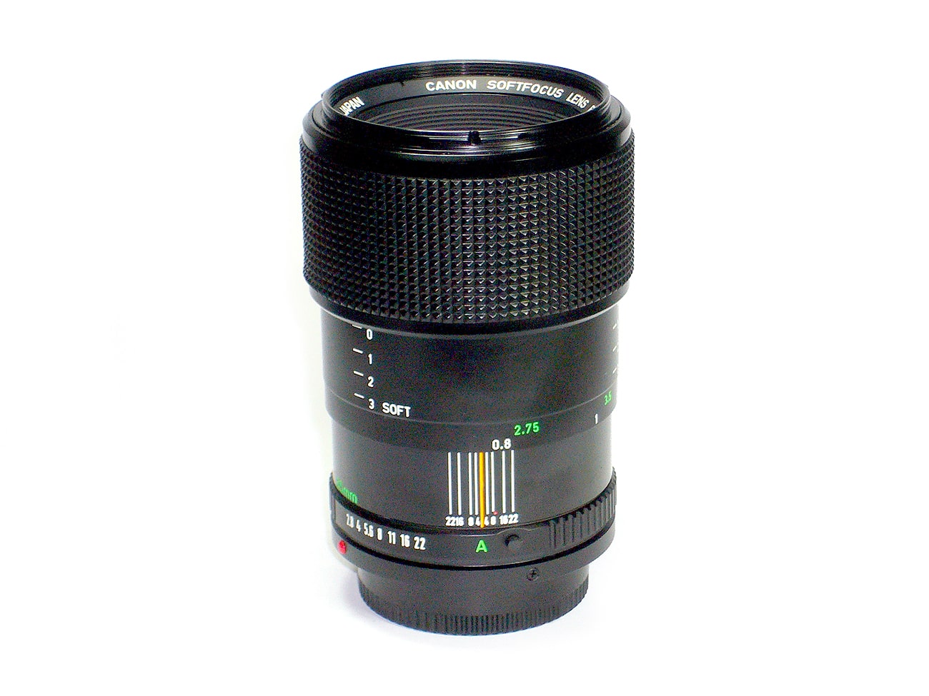 Ein seltenes Canon-FD-Objektiv: ein Weichzeichner, auf englisch: Softfocus Lens. Benutzbar wie ein lichtstarkes kleines Tele (1:2,8/85 mm). Die Scharfstellung erfolgt durch Drehen, die gewollte Unschärfe ist durch ein mehr oder minder starkes Verschieben des Griffringes nach vorne zu steuern.